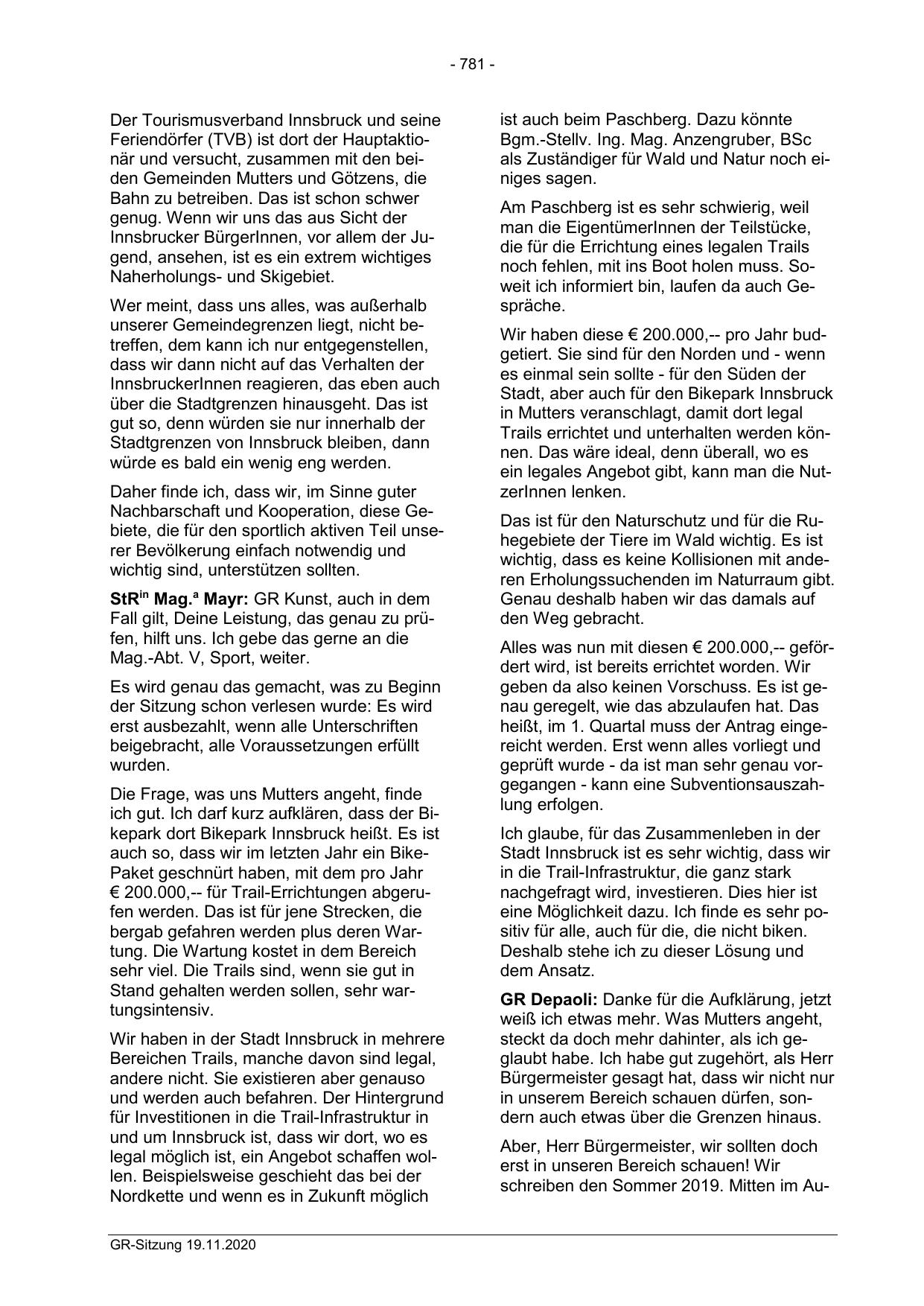 GR Depaoli: Danke für die Aufklärung, jetzt
