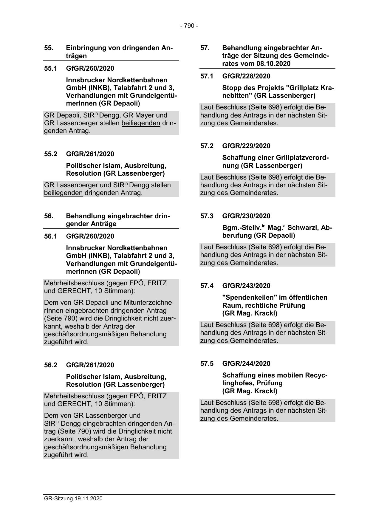 (Seite 790) wird die Dringlichkeit nicht zuerkannt, weshalb der Antrag der