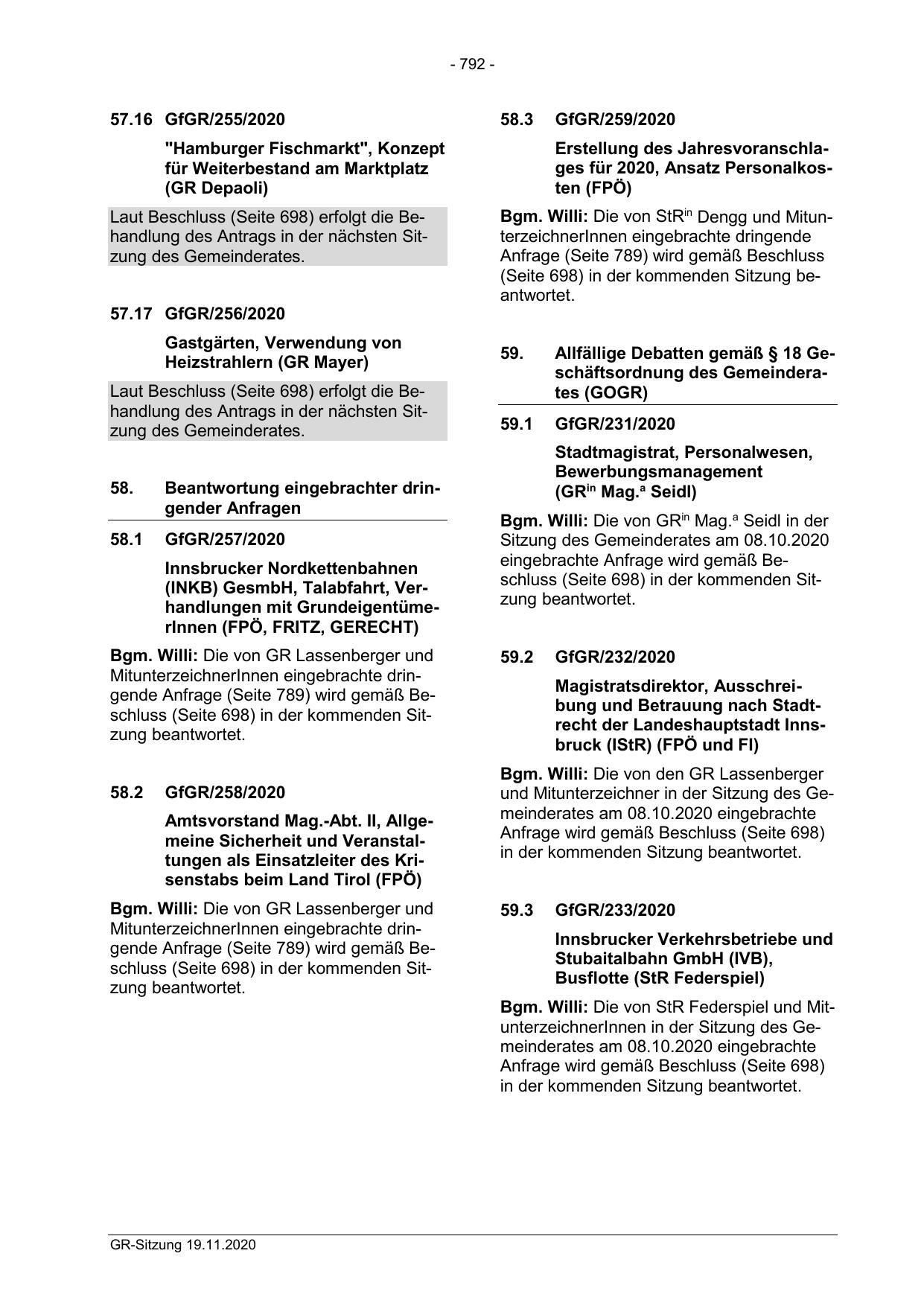 Bgm. Willi: Die von StR Federspiel und MitunterzeichnerInnen in der Sitzung des Gemeinderates am 08.10.2020 eingebrachte