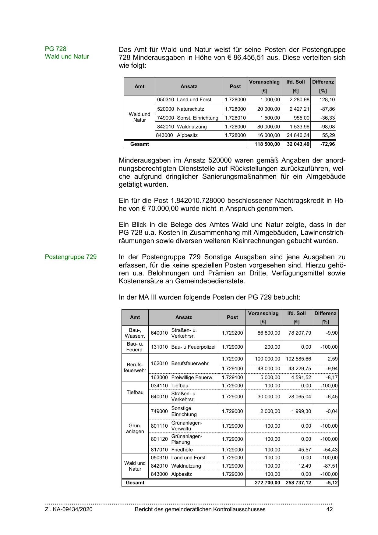 728 Minderausgaben in Höhe von € 86.456,51 aus. Diese verteilten sich