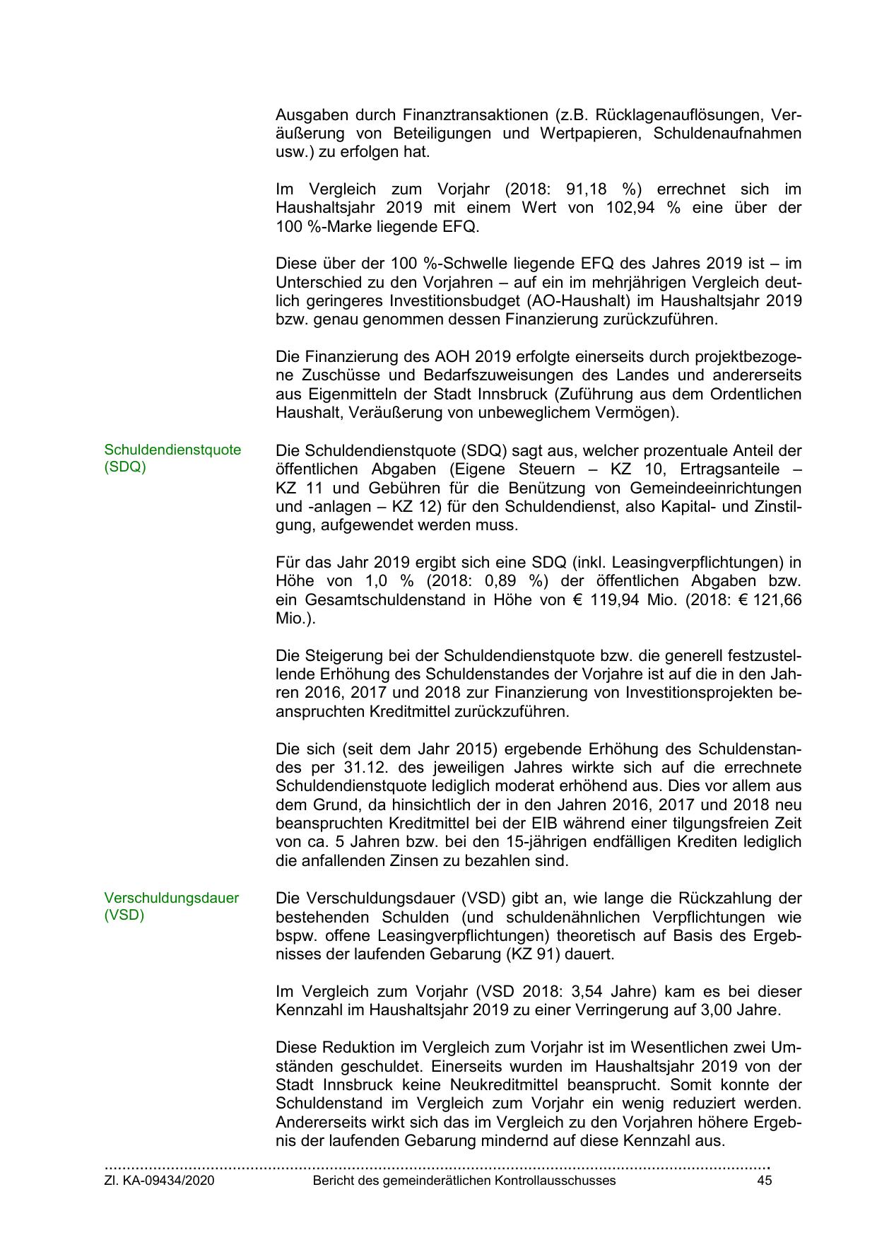 Stadt Innsbruck keine Neukreditmittel beansprucht. Somit konnte der
