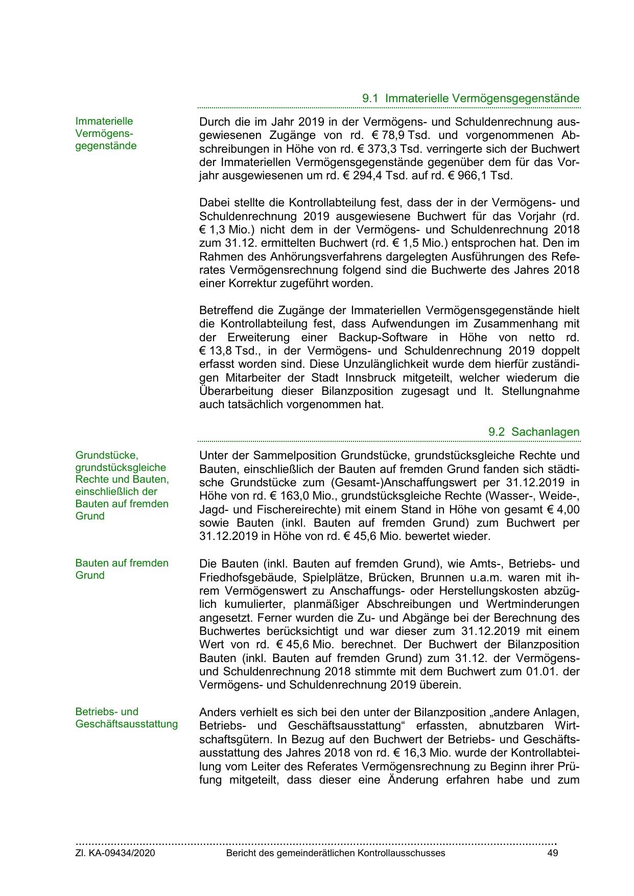 Betriebs- und Geschäftsausstattung“ erfassten, abnutzbaren Wirtschaftsgütern. In Bezug auf den Buchwert der Betriebs- und Geschäftsausstattung des Jahres 2018 von rd. € 16,3 Mio. wurde der Kontrollabteilung vom Leiter des Referates Vermögensrechnung zu Beginn ihrer Prüfung mitgeteilt, dass dieser eine Änderung erfahren habe und zum