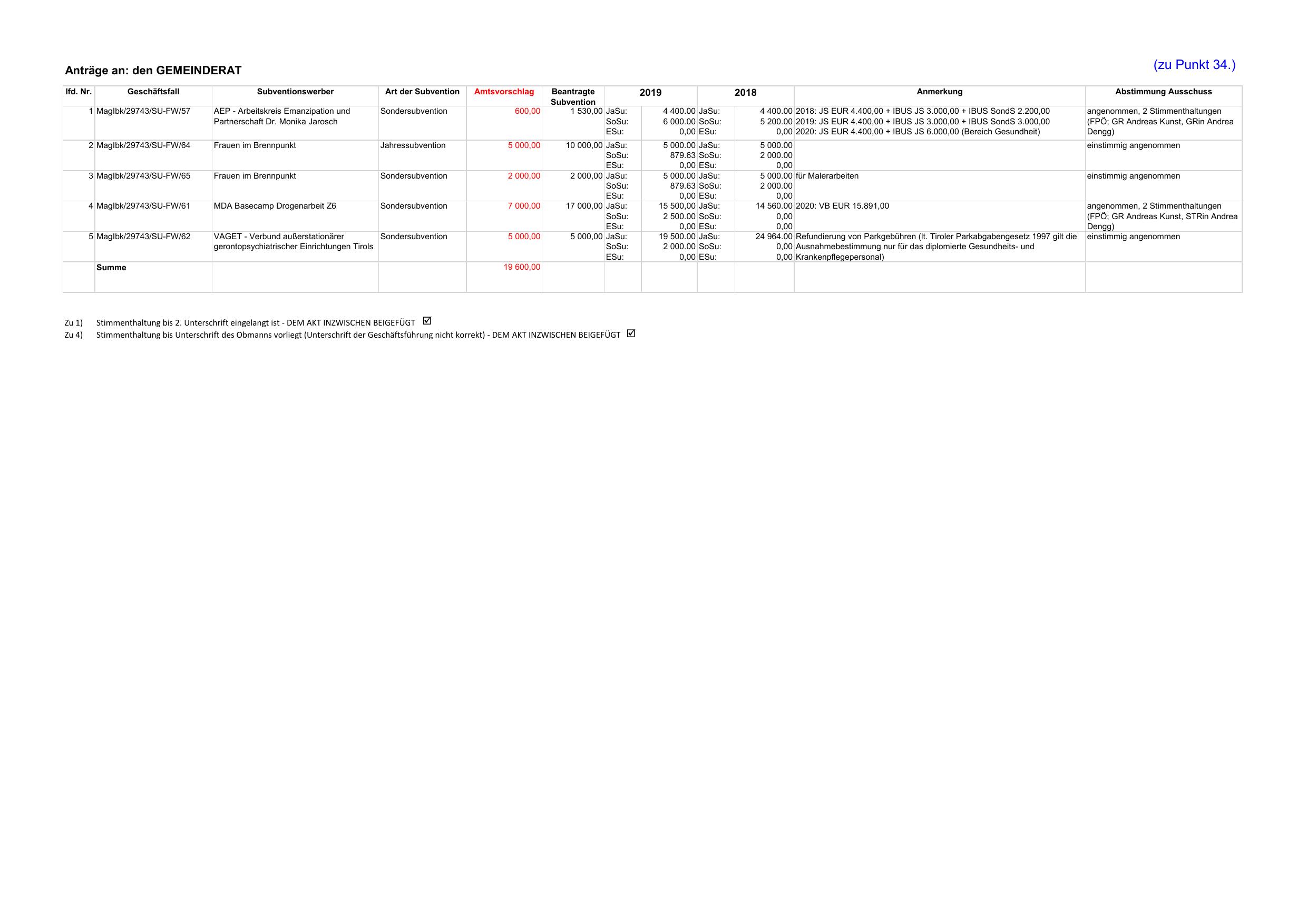 Stimmenthaltung bis Unterschrift des Obmanns vorliegt (Unterschrift der Geschäftsführung nicht korrekt) - DEM AKT INZWISCHEN BEIGEFÜGT