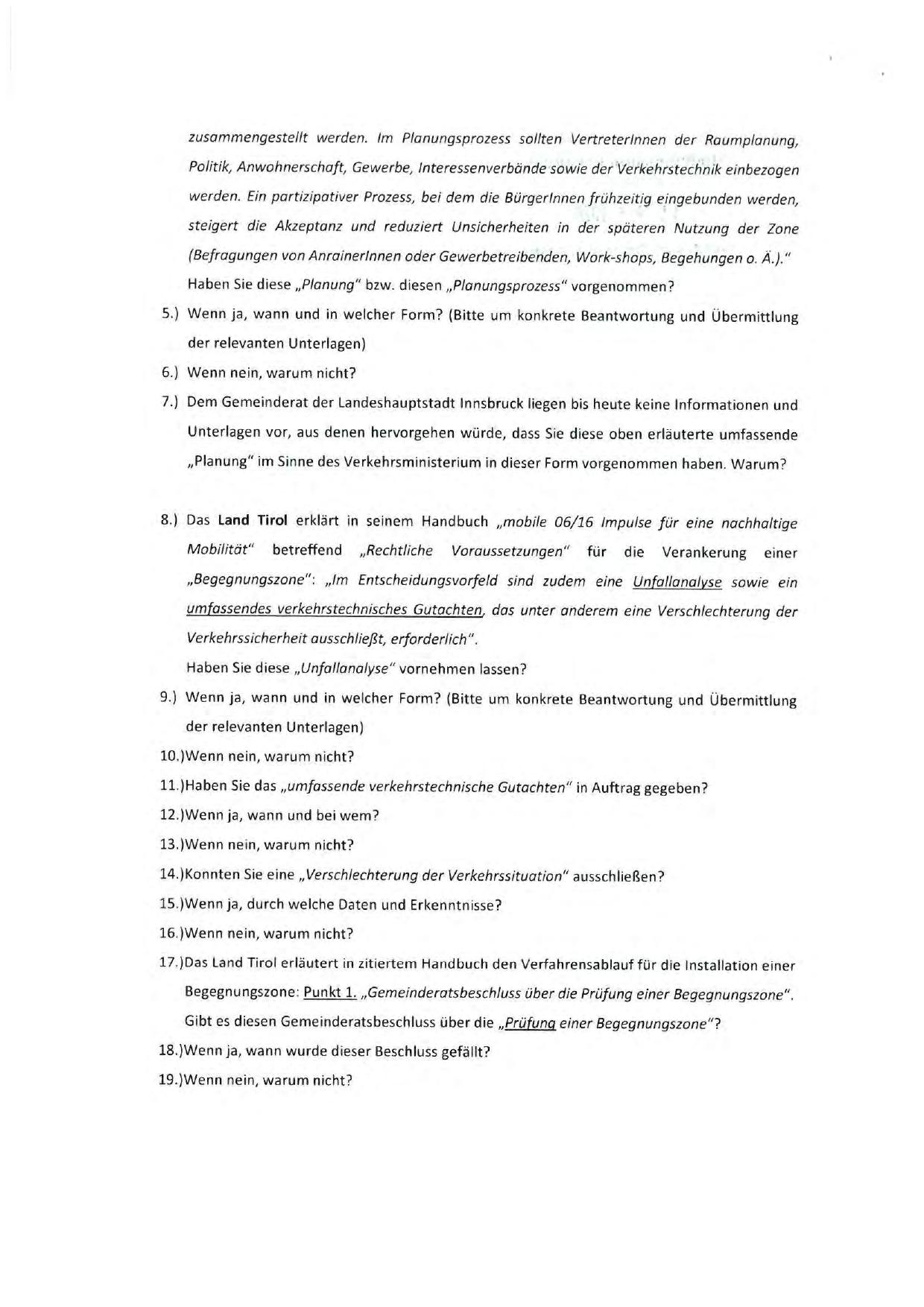 7.) Dem Gemeinderat der Landeshauptstadt Innsbruck liegen bis heute keine Informationen und