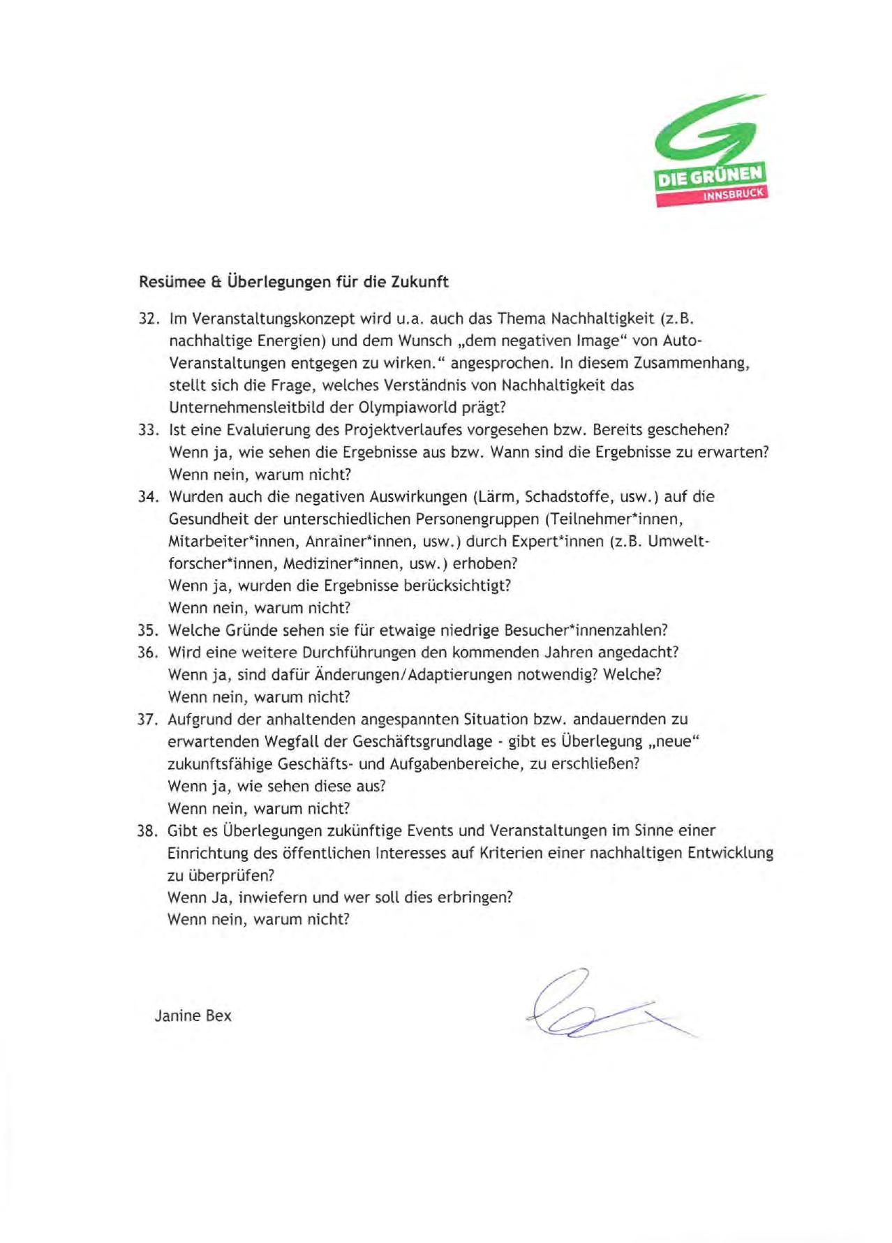 38. Gibt es Überlegungen zukünftige Events und Veranstaltungen im Sinne einer