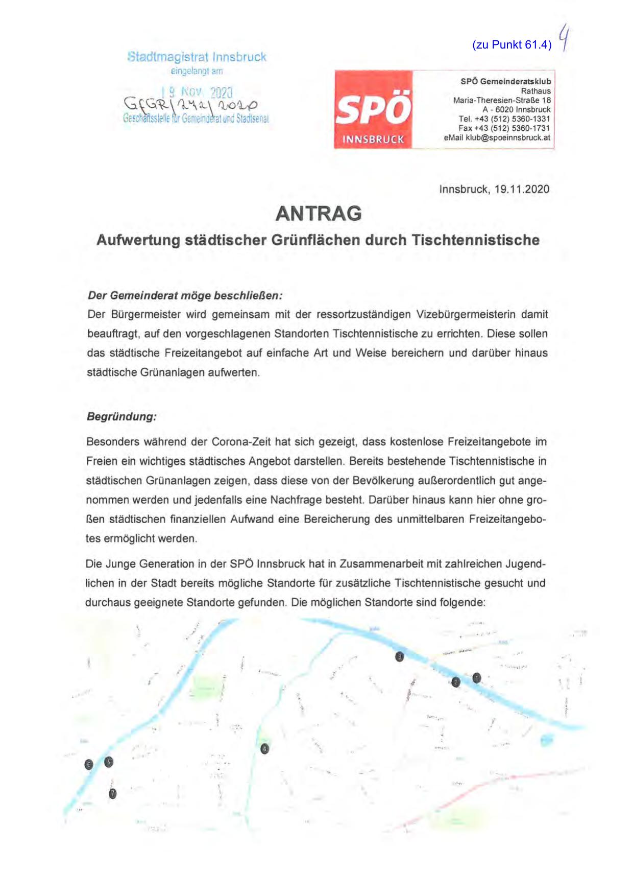 Die Junge Generation in der SPÖ Innsbruck hat in Zusammenarbeit mit zahlreichen Jugendlichen in der Stadt bereits mögliche Standorte für zusätzliche Tischtennistische gesucht und