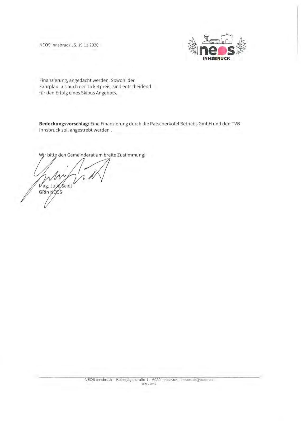 NEOS Innsbruck - Kaiserjägerstraße 1 - 6020 Innsbruck I innsbruck@neos.eu
