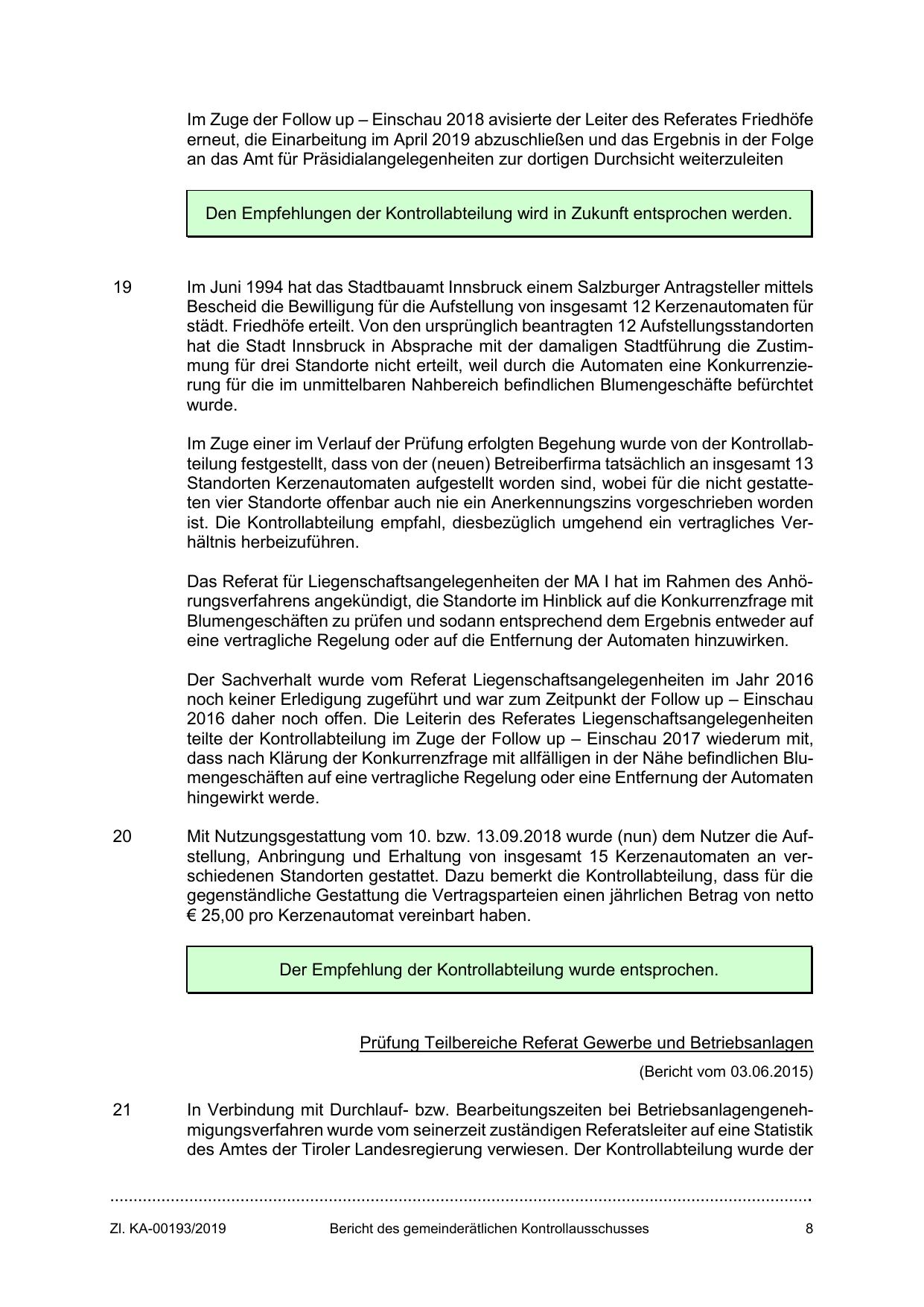 des Amtes der Tiroler Landesregierung verwiesen. Der Kontrollabteilung wurde der