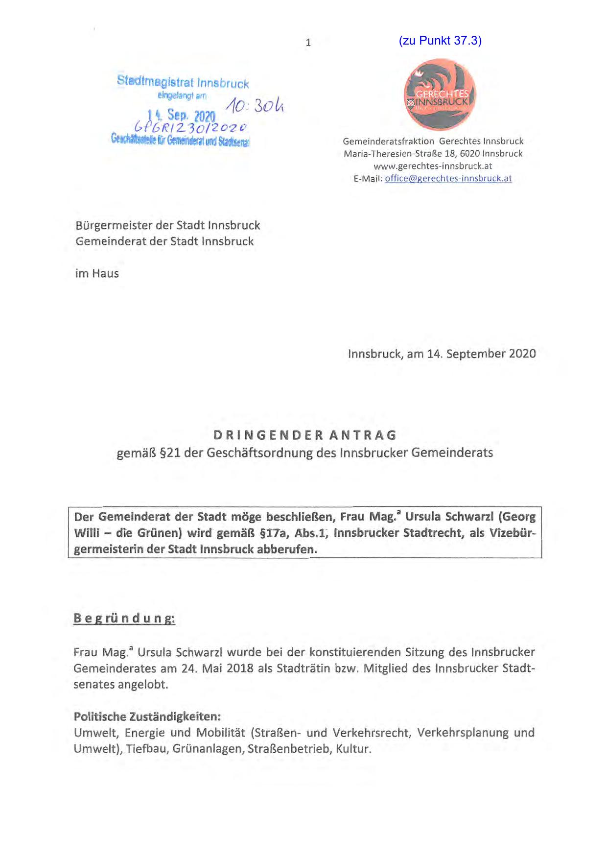 gemäß § 21 der Geschä ftsordnung des Innsbrucker Gemeinderats