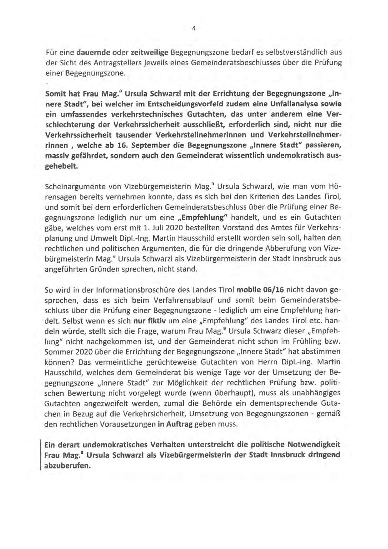 So wird in der Informationsbroschüre des Landes Tirol mobile 06/16 nicht davon gesprochen, dass es sich beim Verfahrensablauf und somit beim Gemeinderatsbeschluss über die Prüfung einer Begegnungszone - lediglich um eine Empfehlung handelt. Selbst wenn es sich nur fiktiv um eine „Empfehlung" des Landes Tirol etc. han3