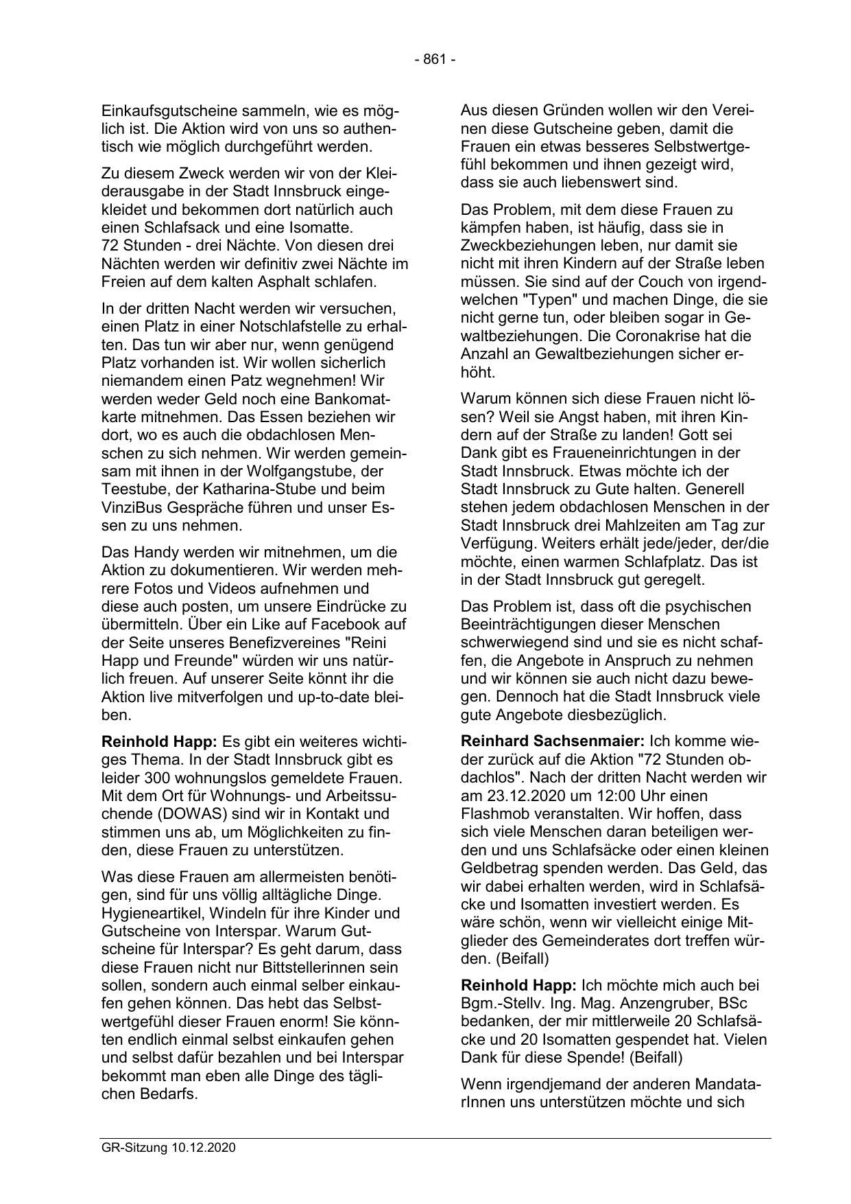 Reinhold Happ: Es gibt ein weiteres wichtiges Thema. In der Stadt Innsbruck gibt es