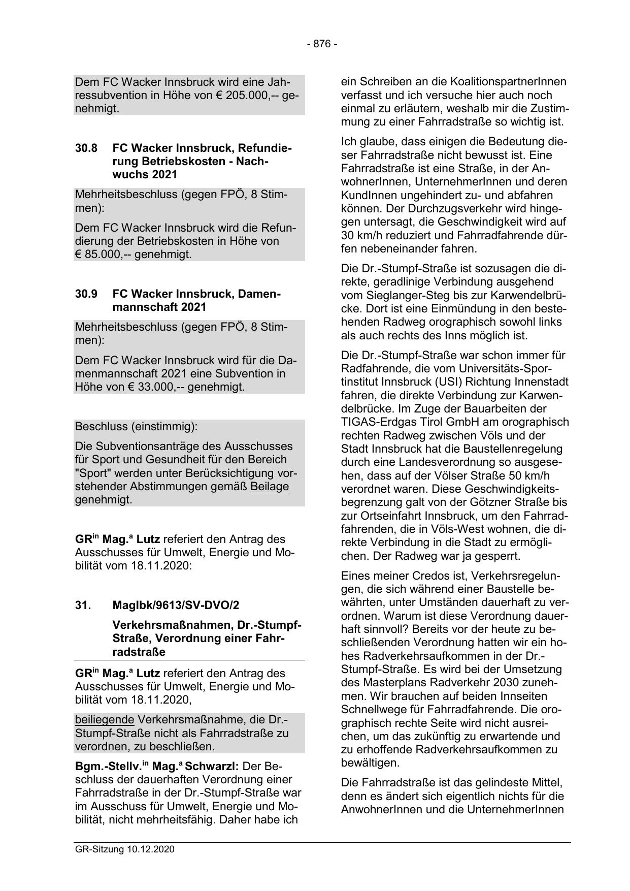 Bgm.-Stellv.in Mag.a Schwarzl: Der Beschluss der dauerhaften Verordnung einer