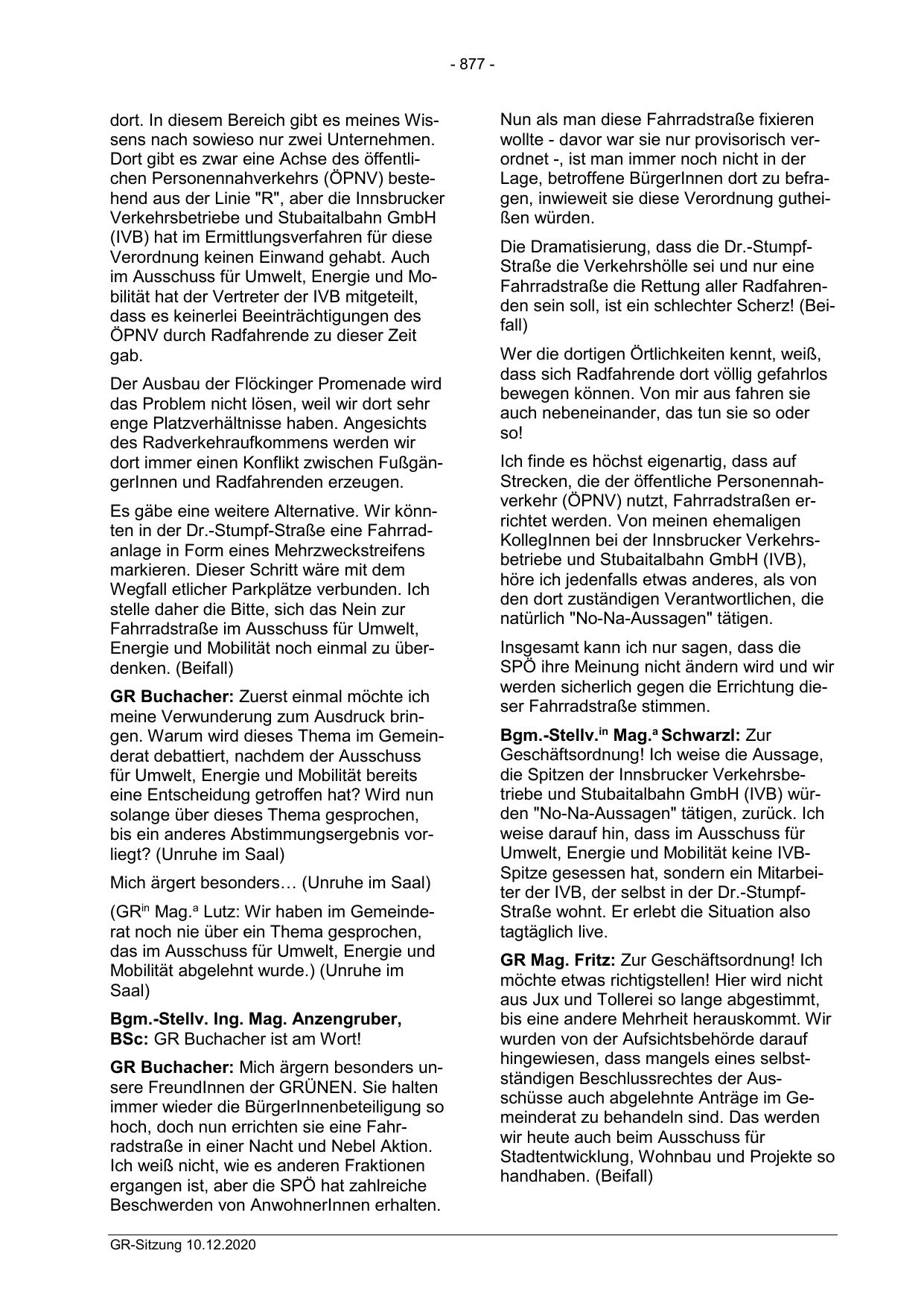 Umwelt, Energie und Mobilität keine IVBSpitze gesessen hat, sondern ein Mitarbeiter der IVB, der selbst in der Dr.-StumpfStraße wohnt. Er erlebt die Situation also