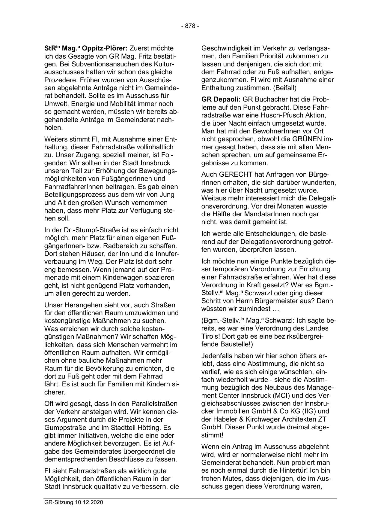 GR Depaoli: GR Buchacher hat die Probleme auf den Punkt gebracht. Diese Fahrradstraße war eine Husch-Pfusch Aktion,