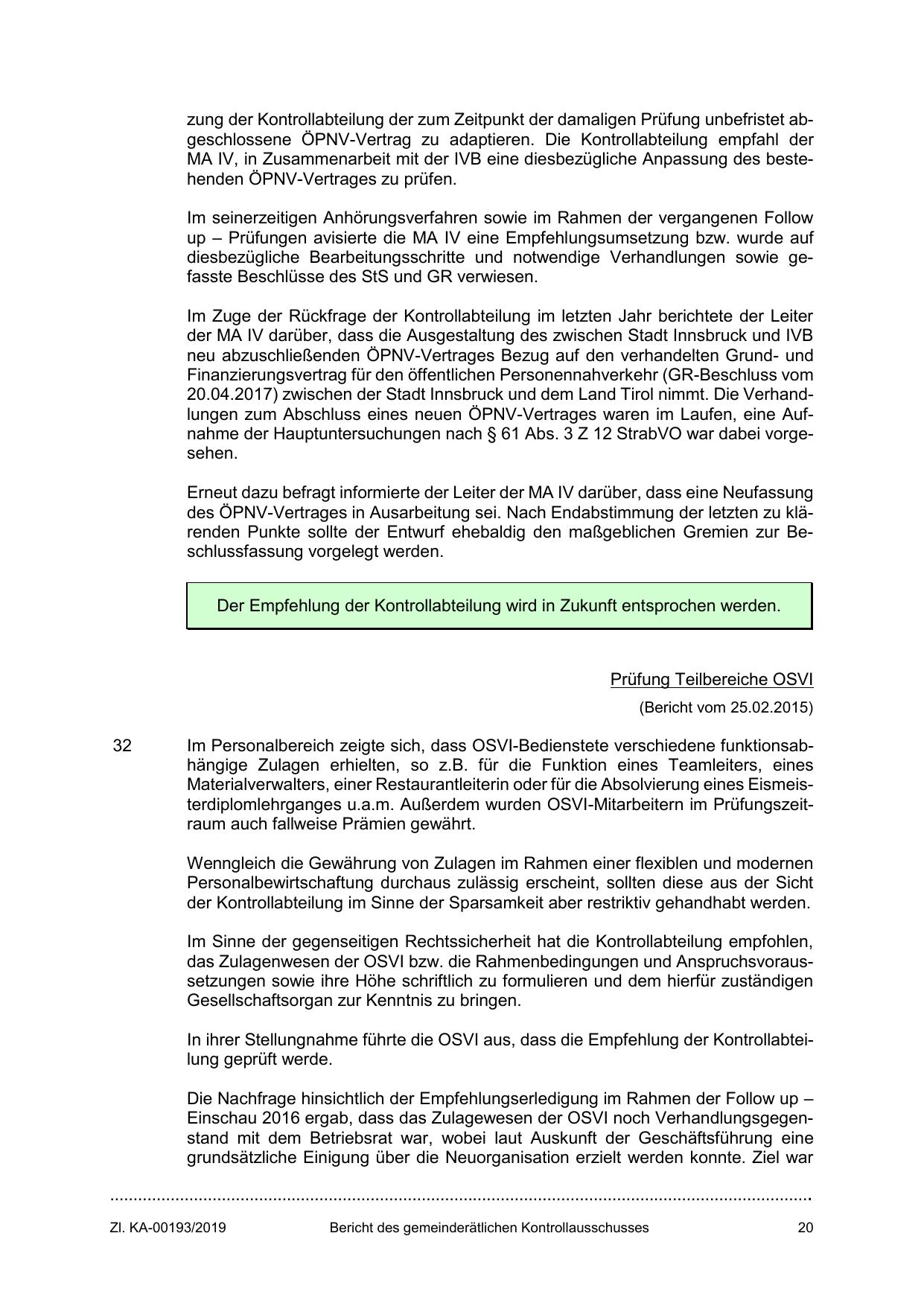 zung der Kontrollabteilung der zum Zeitpunkt der damaligen Prüfung unbefristet abgeschlossene ÖPNV-Vertrag zu adaptieren. Die Kontrollabteilung empfahl der