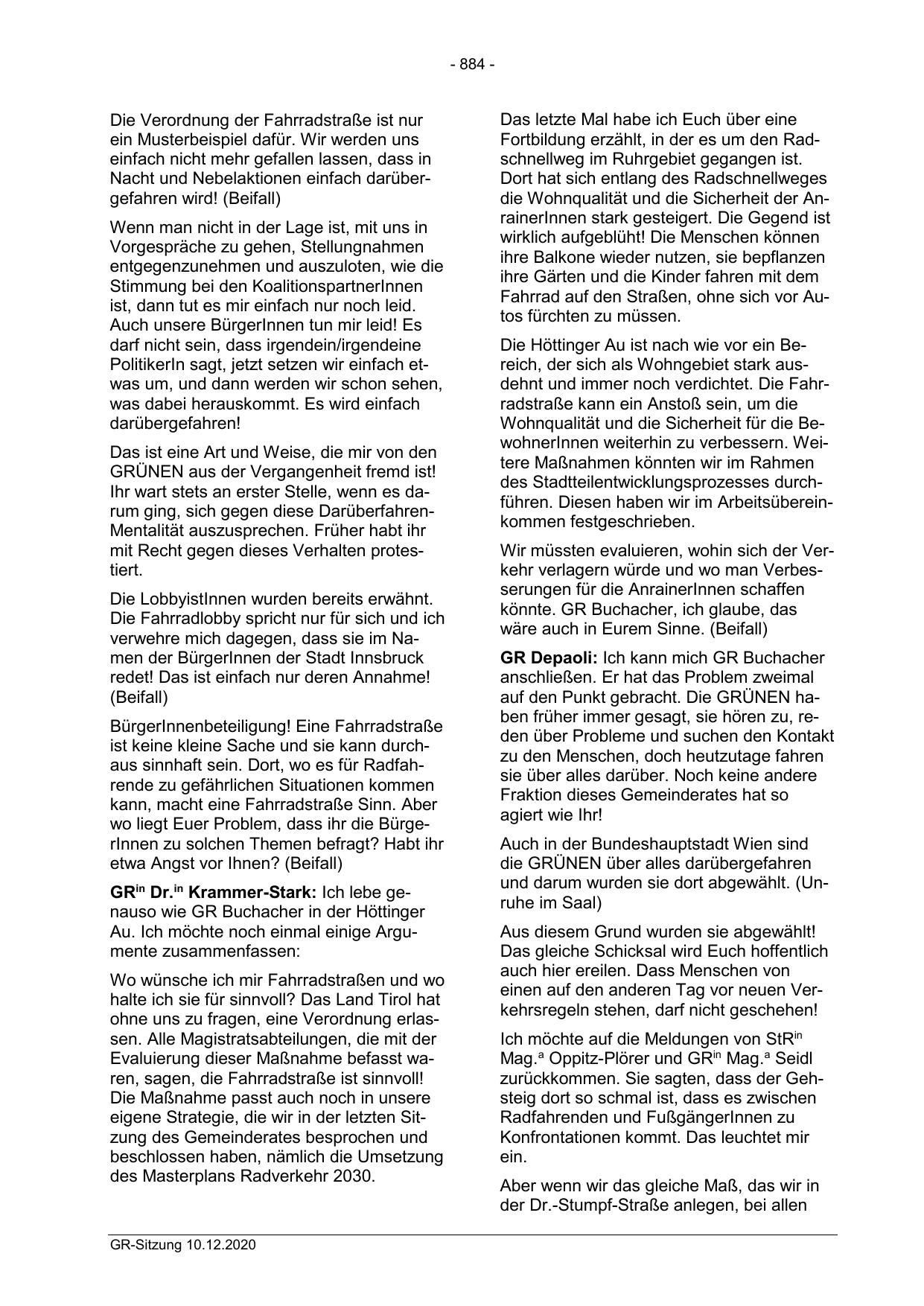 GRin Dr.in Krammer-Stark: Ich lebe genauso wie GR Buchacher in der Höttinger