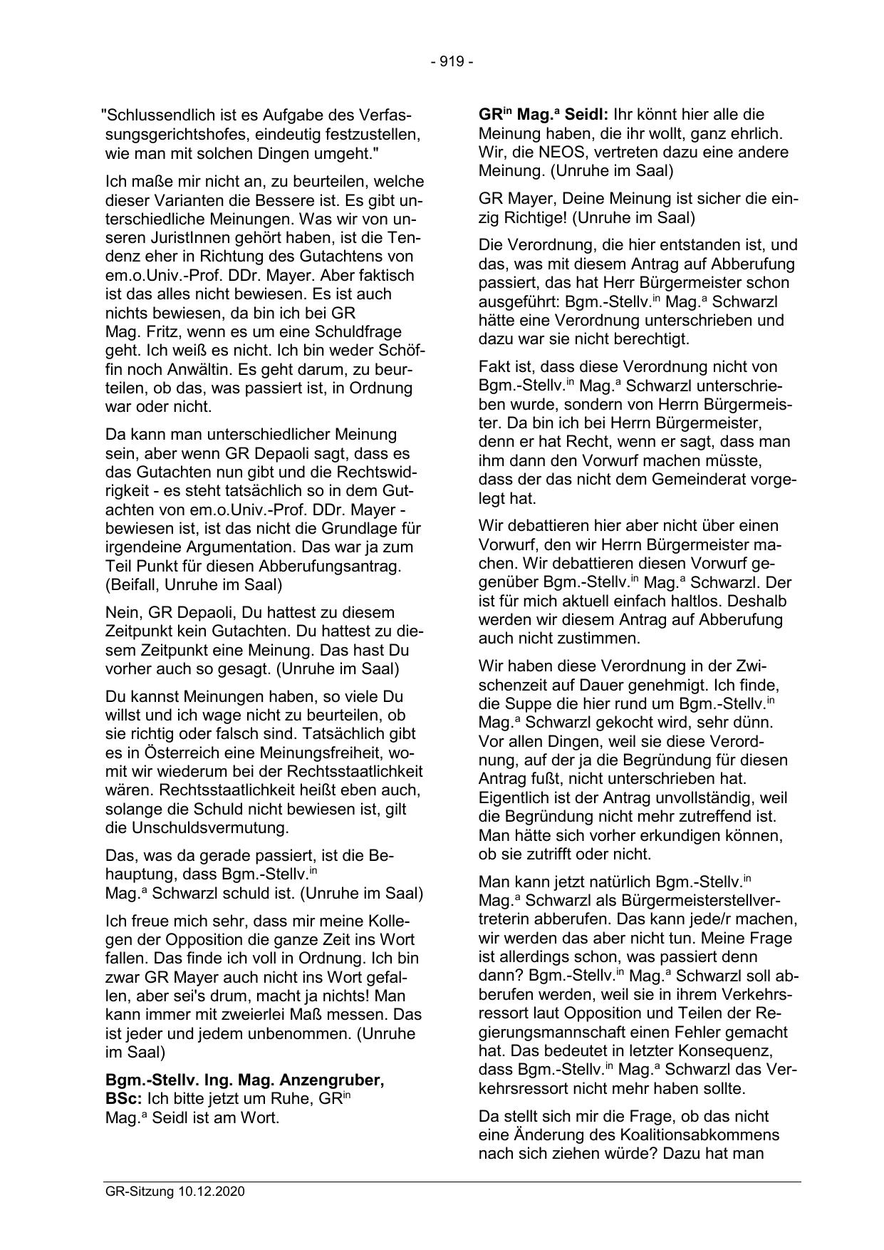 GR Mayer, Deine Meinung ist sicher die einzig Richtige! (Unruhe im Saal)