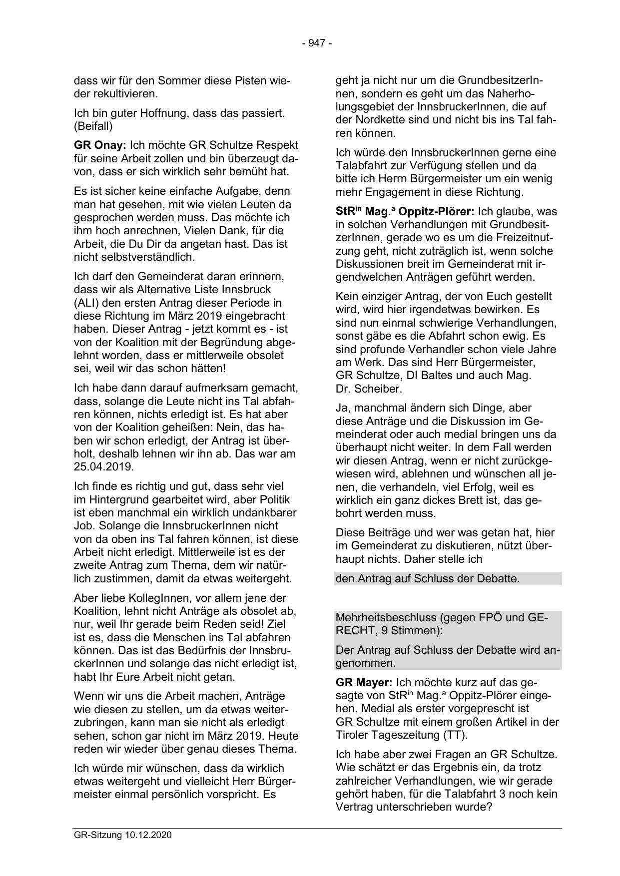 können. Das ist das Bedürfnis der InnsbruckerInnen und solange das nicht erledigt ist,