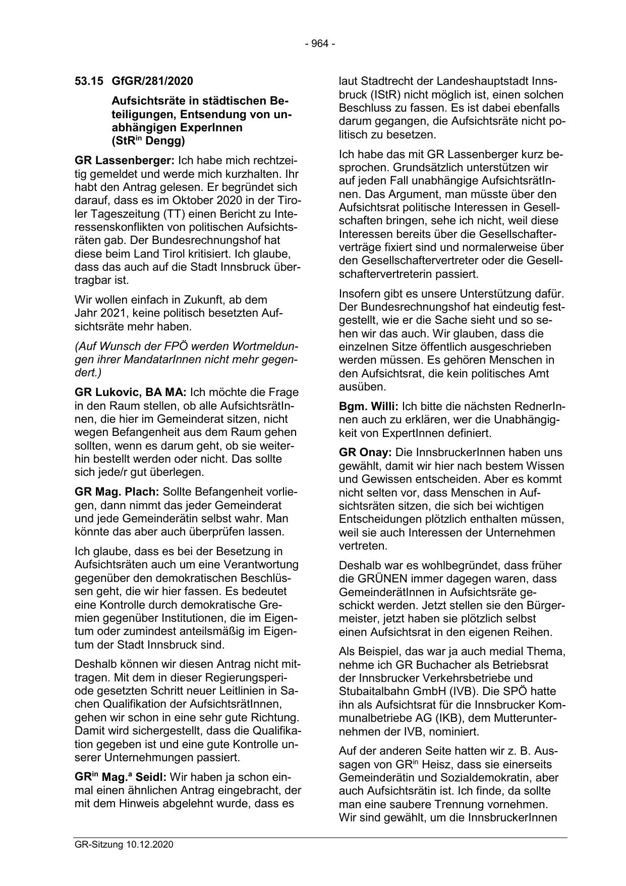 laut Stadtrecht der Landeshauptstadt Innsbruck (IStR) nicht möglich ist, einen solchen