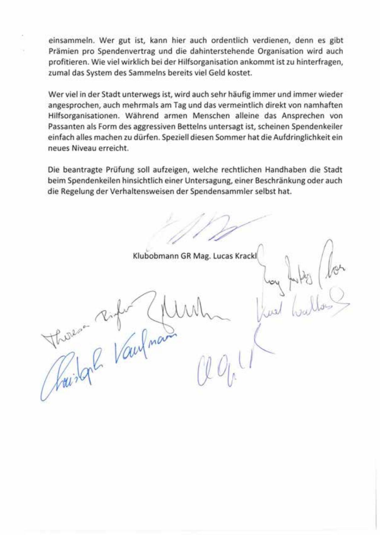 beim Spendenkeilen hinsichtlich einer Untersagung, einer Beschränkung oder auch