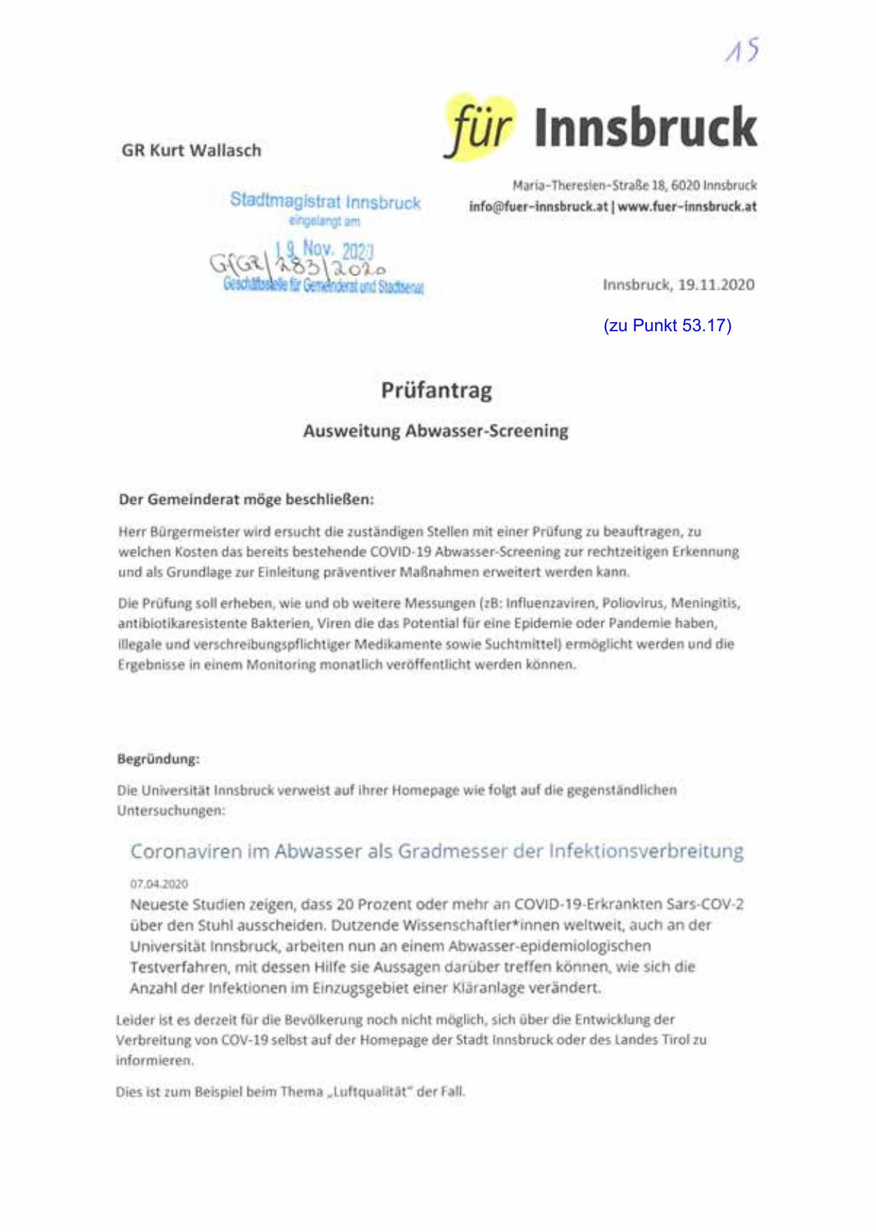 Verbreitung von COV-19 selbst auf der Homepage der Stadt Innsbruck oder des Landes Tirol zu