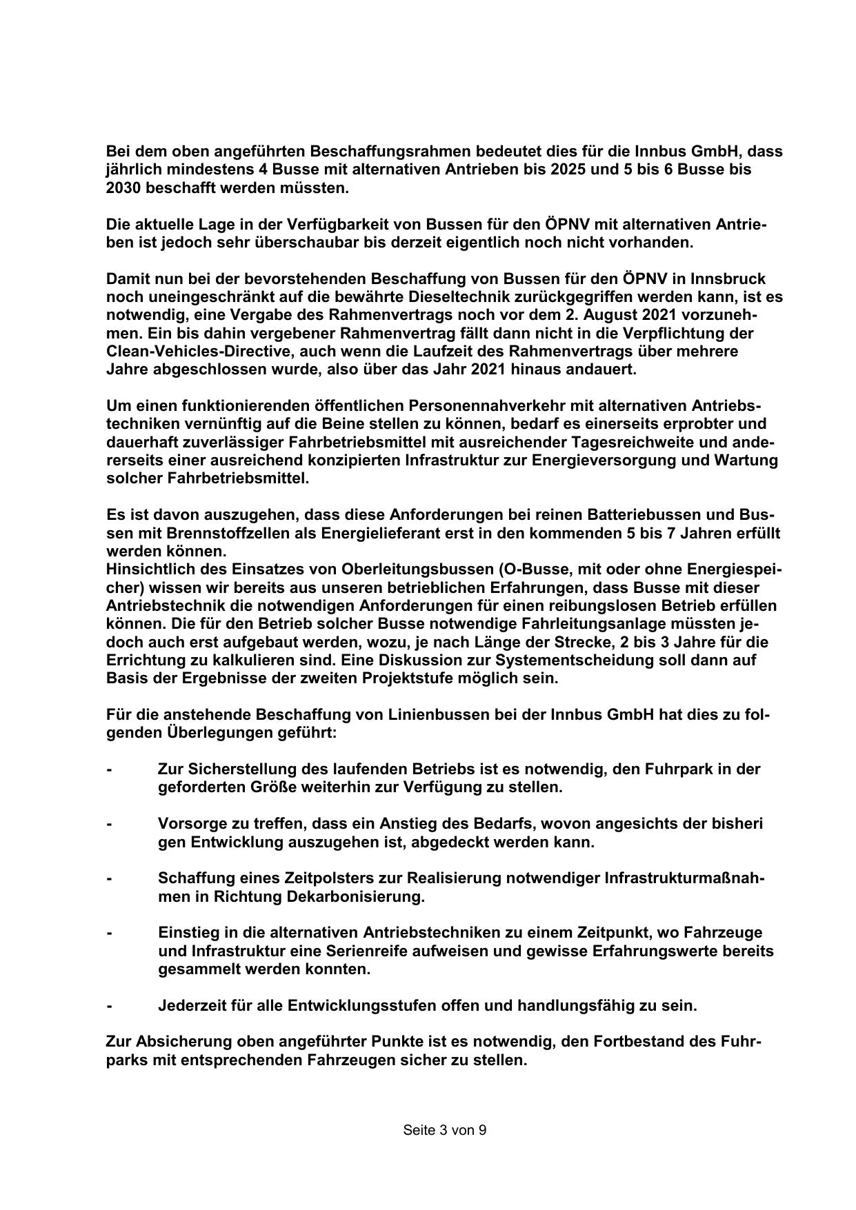 Damit nun bei der bevorstehenden Beschaffung von Bussen für den ÖPNV in Innsbruck