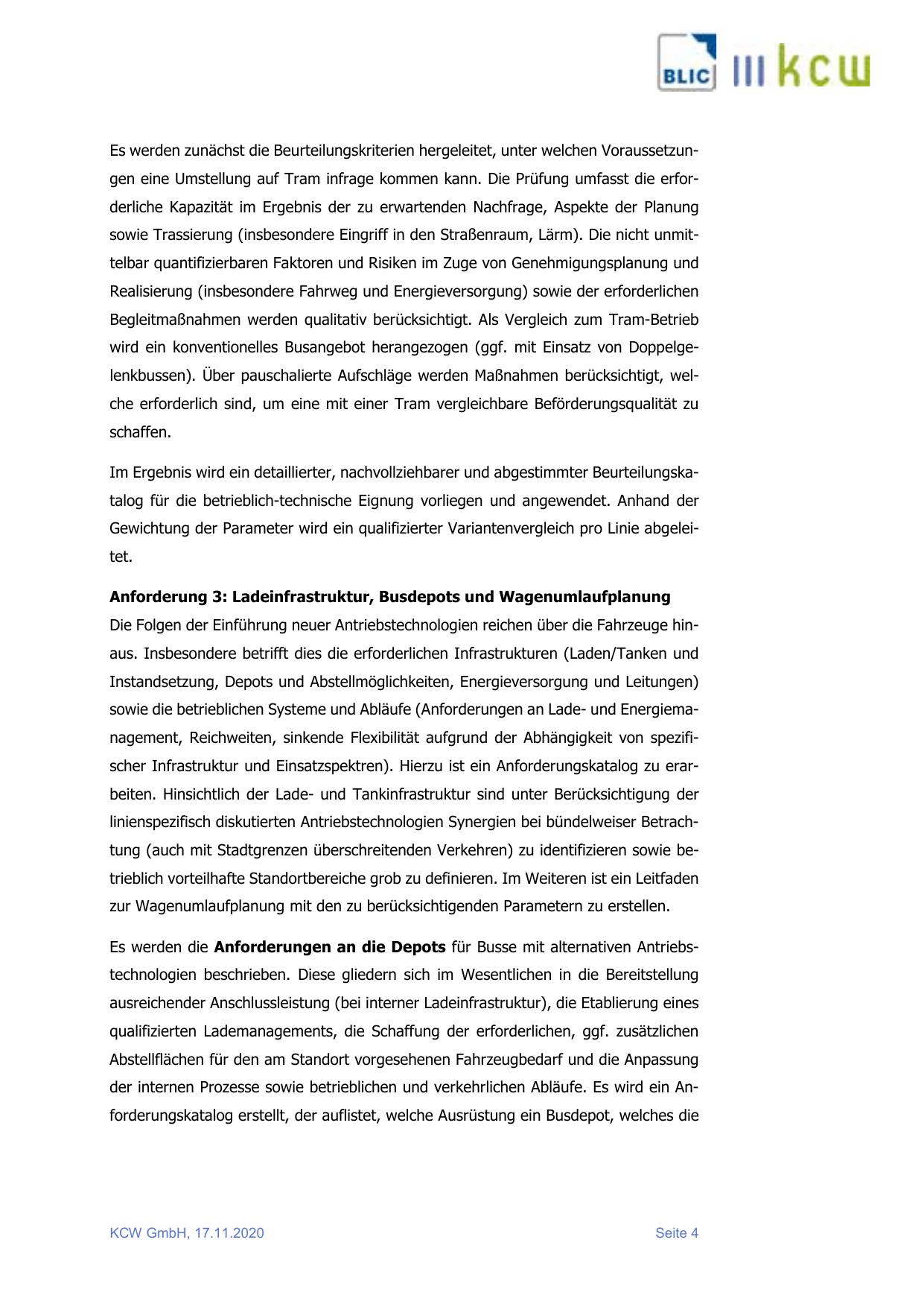 der internen Prozesse sowie betrieblichen und verkehrlichen Abläufe. Es wird ein Anforderungskatalog erstellt, der auflistet, welche Ausrüstung ein Busdepot, welches die