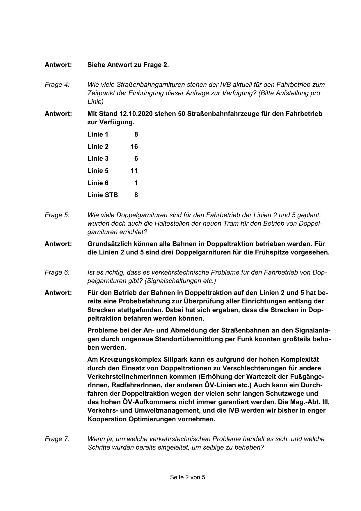 Wie viele Straßenbahngarnituren stehen der IVB aktuell für den Fahrbetrieb zum