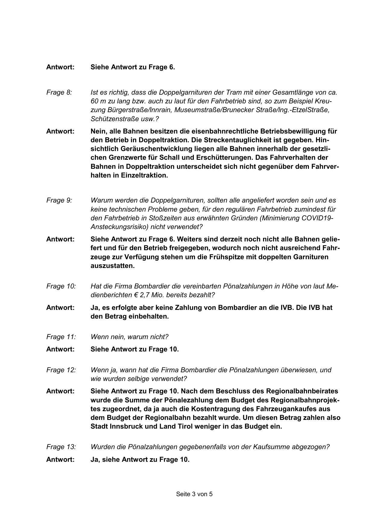 Ja, es erfolgte aber keine Zahlung von Bombardier an die IVB. Die IVB hat