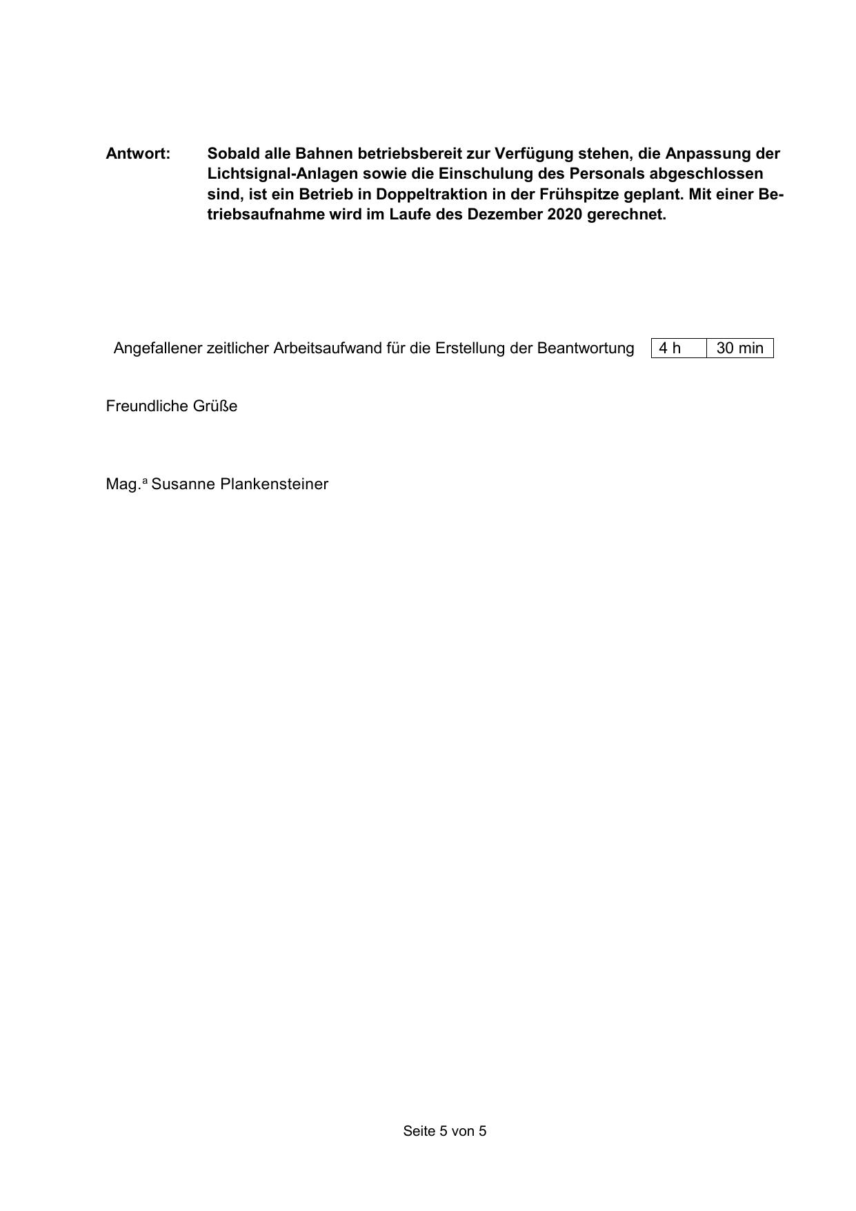 sind, ist ein Betrieb in Doppeltraktion in der Frühspitze geplant. Mit einer Betriebsaufnahme wird im Laufe des Dezember 2020 gerechnet.