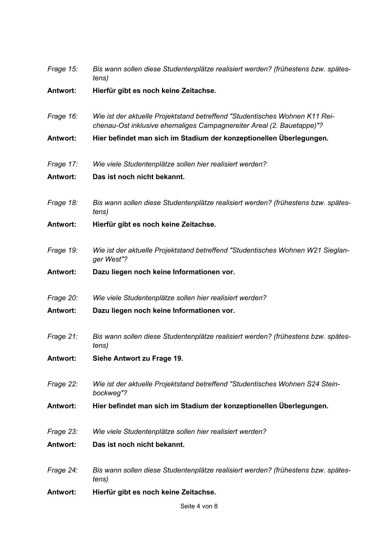 Bis wann sollen diese Studentenplätze realisiert werden? (frühestens bzw. spätestens)