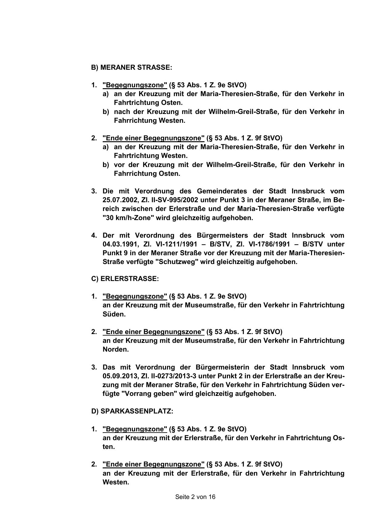 Punkt 9 in der Meraner Straße vor der Kreuzung mit der Maria-TheresienStraße verfügte "Schutzweg" wird gleichzeitig aufgehoben.