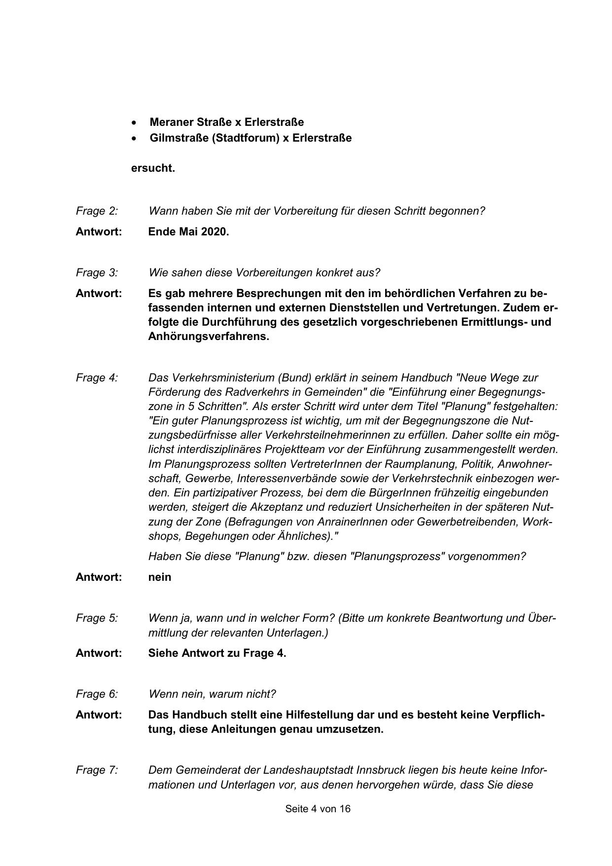 Dem Gemeinderat der Landeshauptstadt Innsbruck liegen bis heute keine Informationen und Unterlagen vor, aus denen hervorgehen würde, dass Sie diese