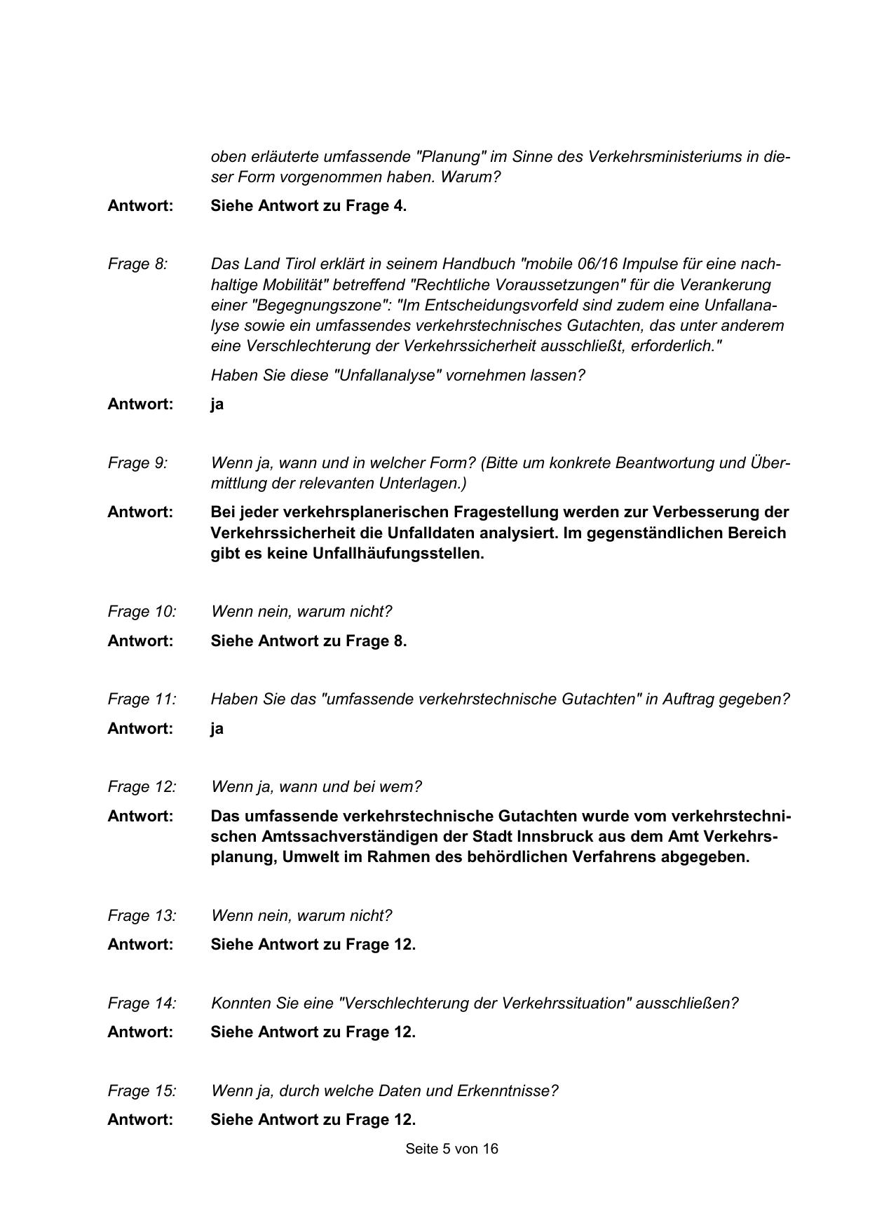 Das umfassende verkehrstechnische Gutachten wurde vom verkehrstechnischen Amtssachverständigen der Stadt Innsbruck aus dem Amt Verkehrsplanung, Umwelt im Rahmen des behördlichen Verfahrens abgegeben.