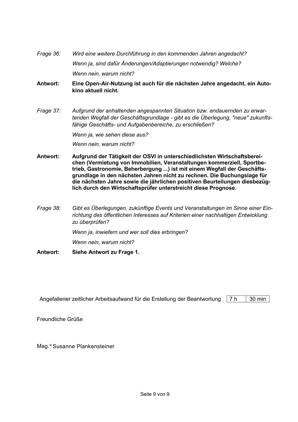 Angefallener zeitlicher Arbeitsaufwand für die Erstellung der Beantwortung