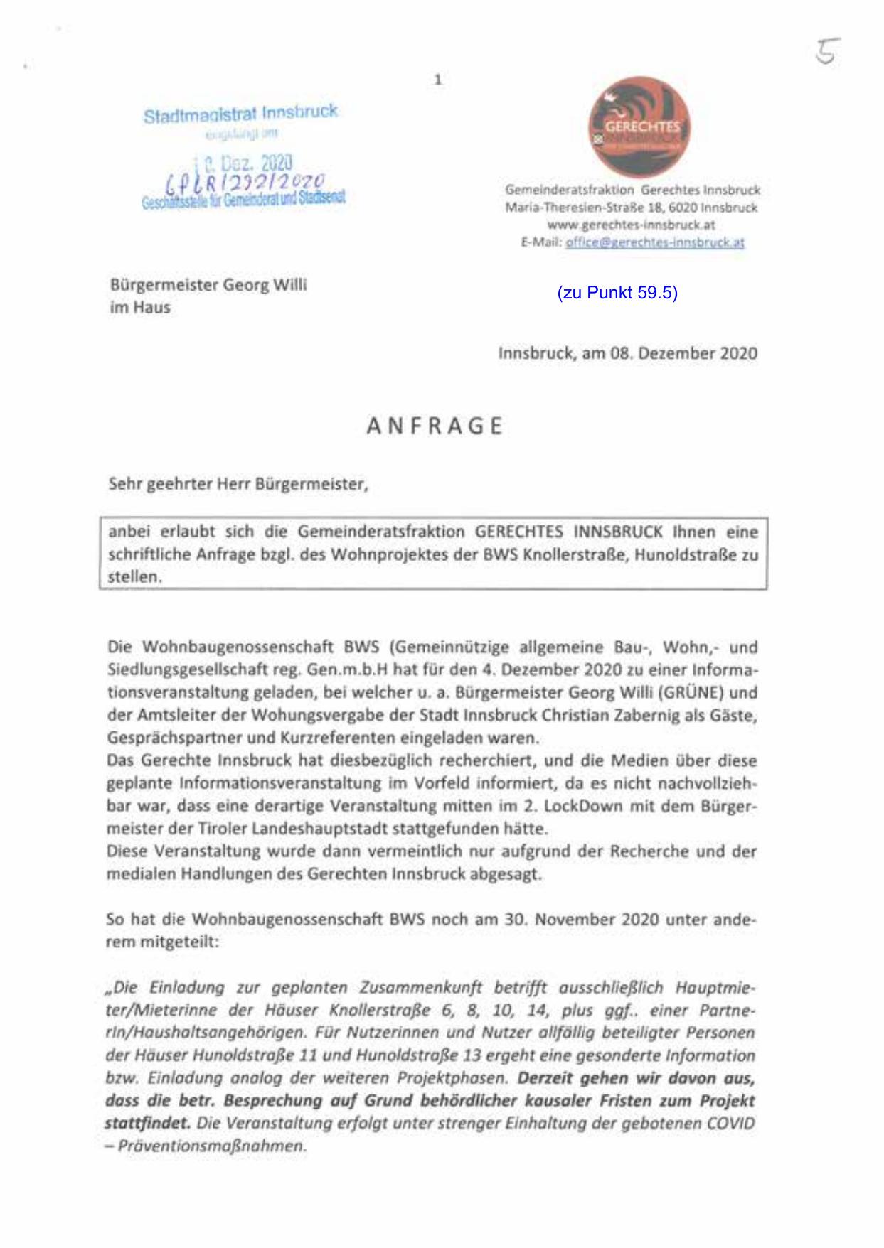 anbei erlaubt sich die Gemeinderatsfraktion GERECHTES INNSBRUCK Ihnen eine