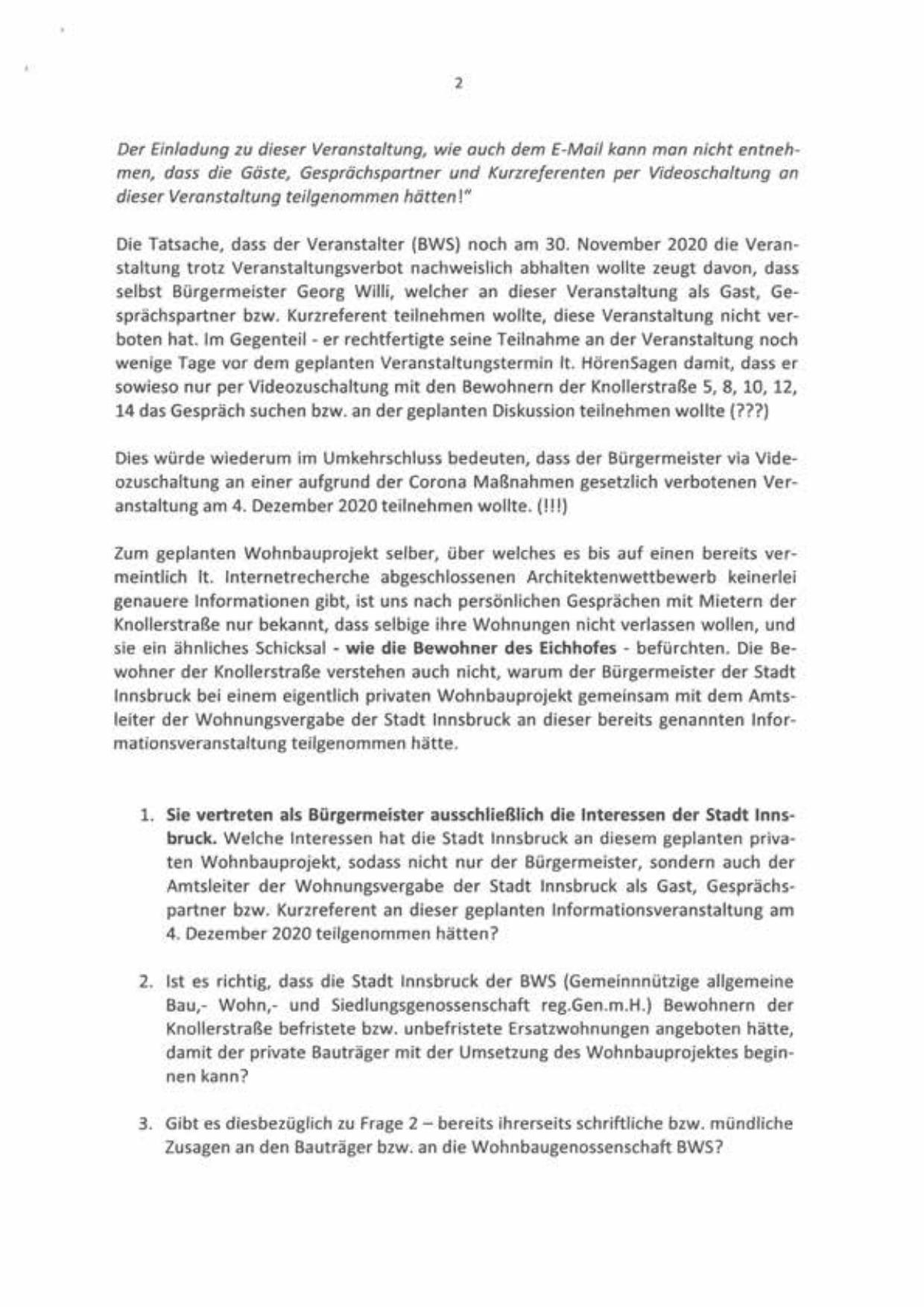 Innsbruck bei einem eigentlich privaten Wohnbauprojekt gemeinsam mit dem Amtsleiter der Wohnungsvergabe der Stadt Innsbruck an dieser bereits genannten Informationsveranstaltung teilgenommen hätte.