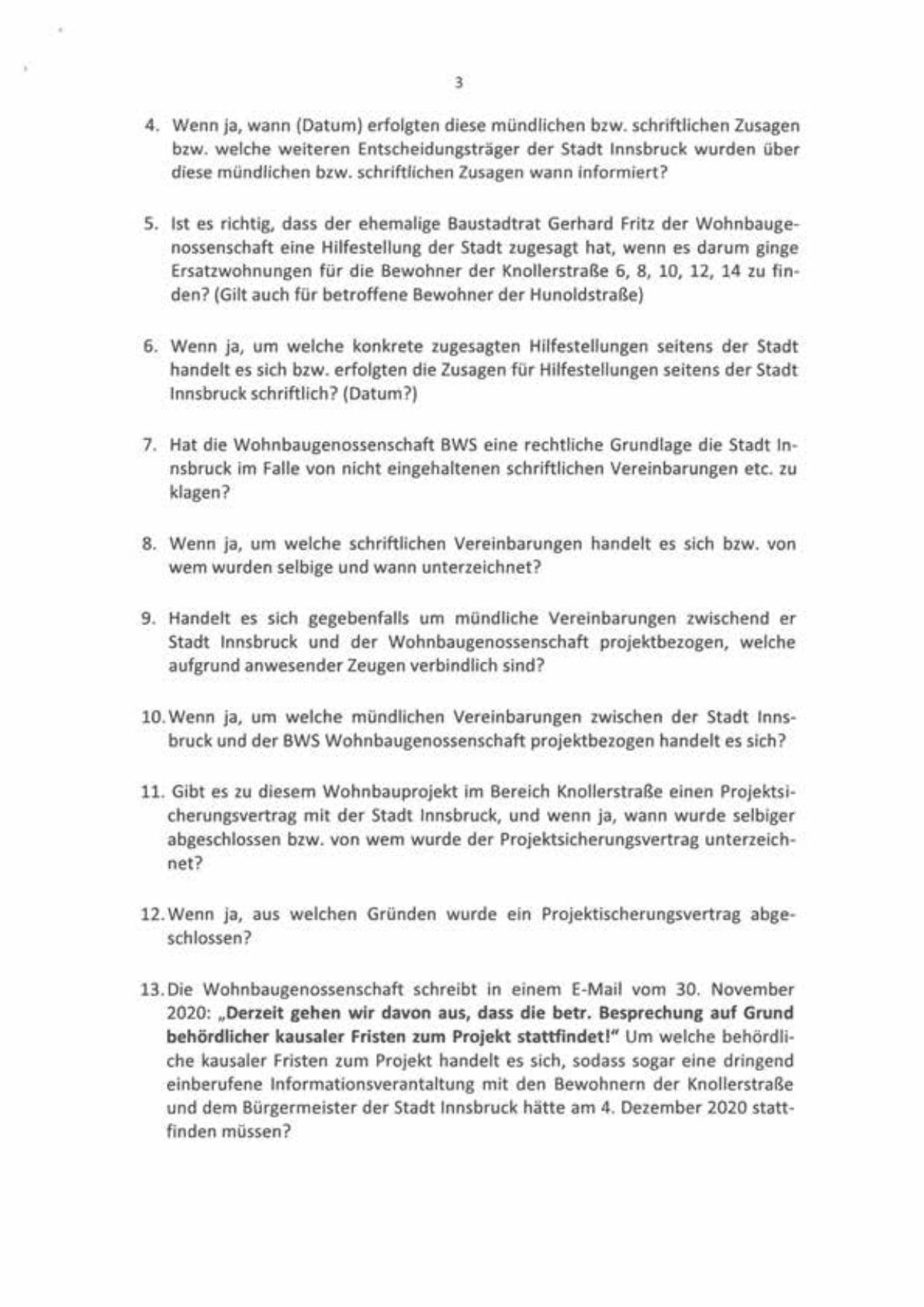 11. Gibt es zu diesem Wohnbauprojekt im Bereich Knollerstraße einen Projektsicherungsvertrag mit der Stadt Innsbruck, und wenn ja, wann wurde selbiger