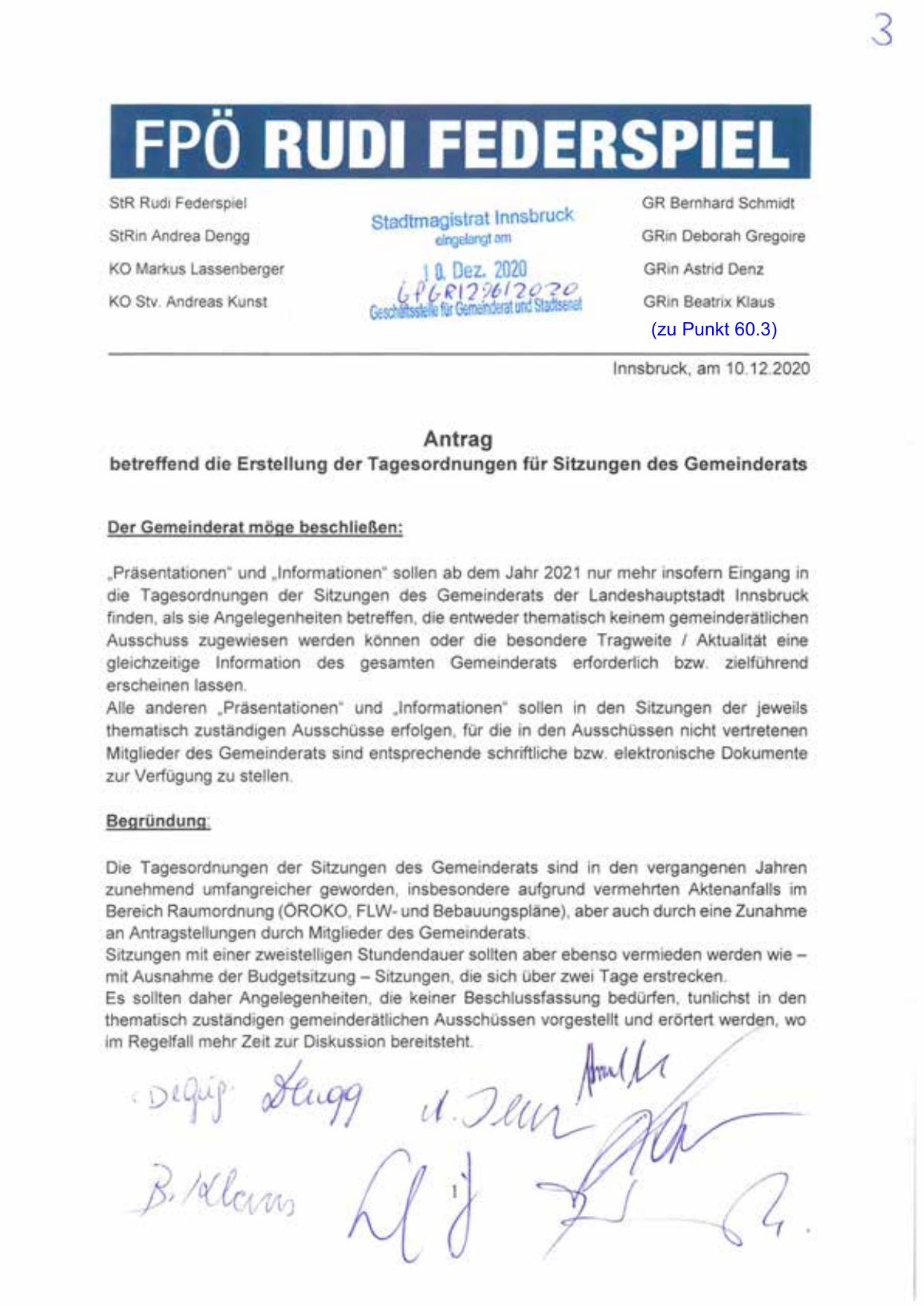 die Tagesordnungen der Sitzungen des Gemeinderats der Landeshauptstadt Innsbruck