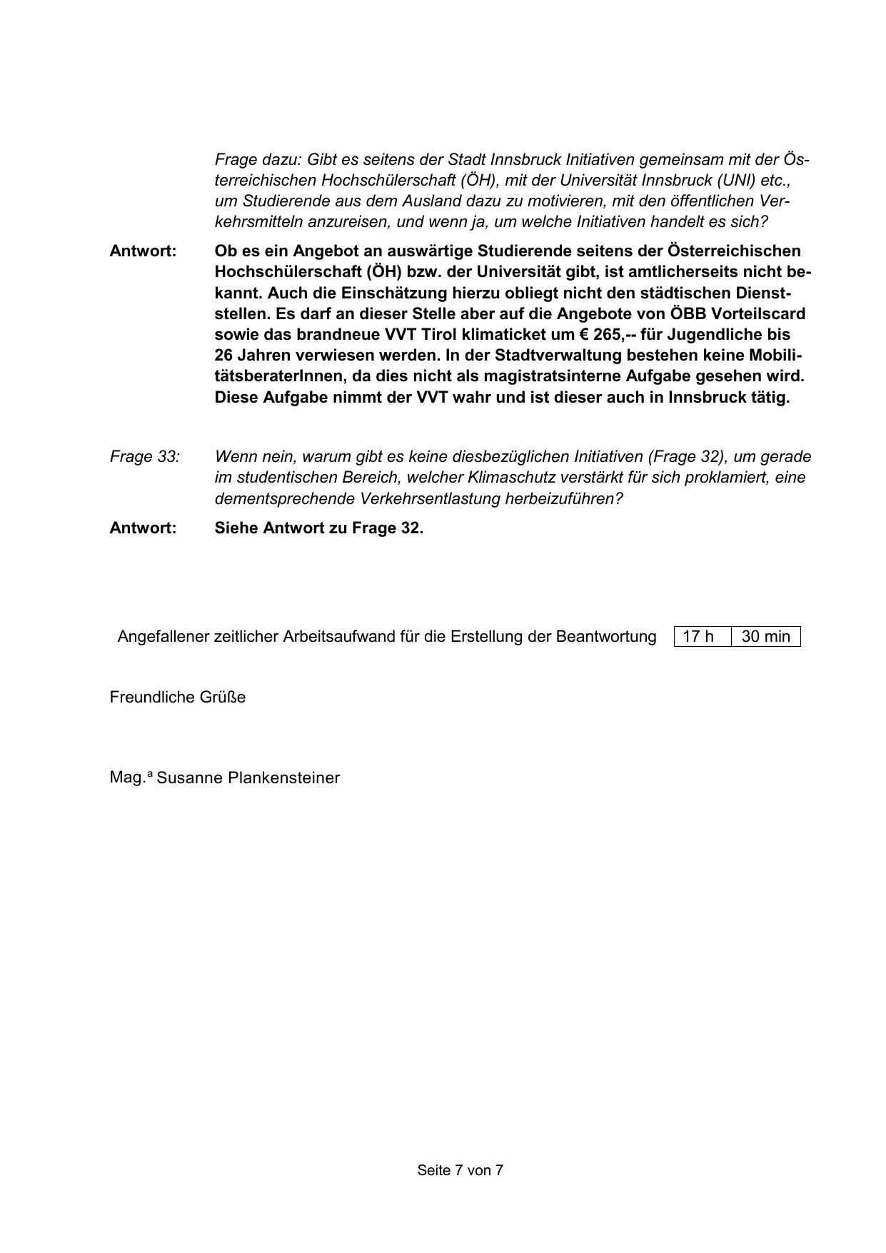Frage dazu: Gibt es seitens der Stadt Innsbruck Initiativen gemeinsam mit der Österreichischen Hochschülerschaft (ÖH), mit der Universität Innsbruck (UNI) etc.,