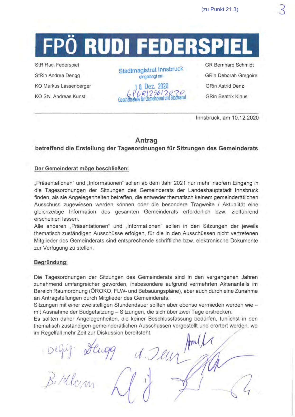 die Tagesordnungen der Sitzungen des Gemeinderats der Landeshauptstadt Innsbruck