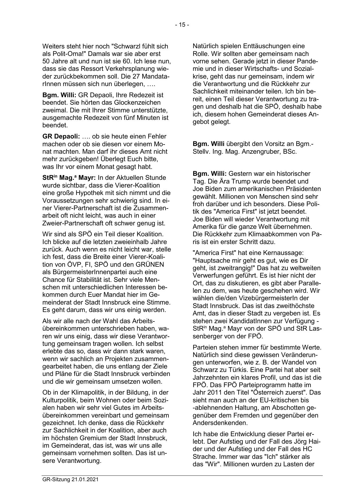 Bgm. Willi: GR Depaoli, Ihre Redezeit ist