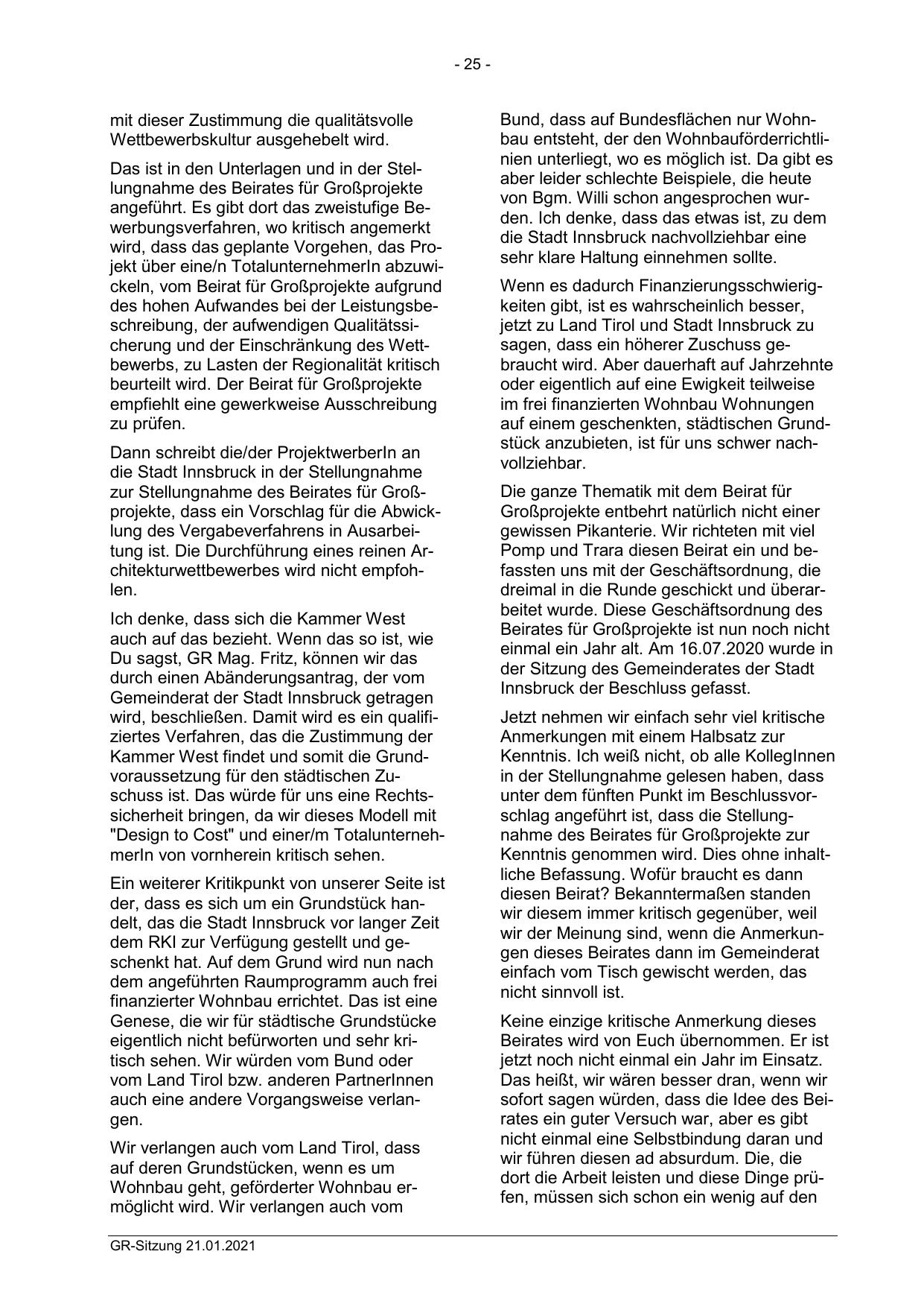 wir der Meinung sind, wenn die Anmerkungen dieses Beirates dann im Gemeinderat