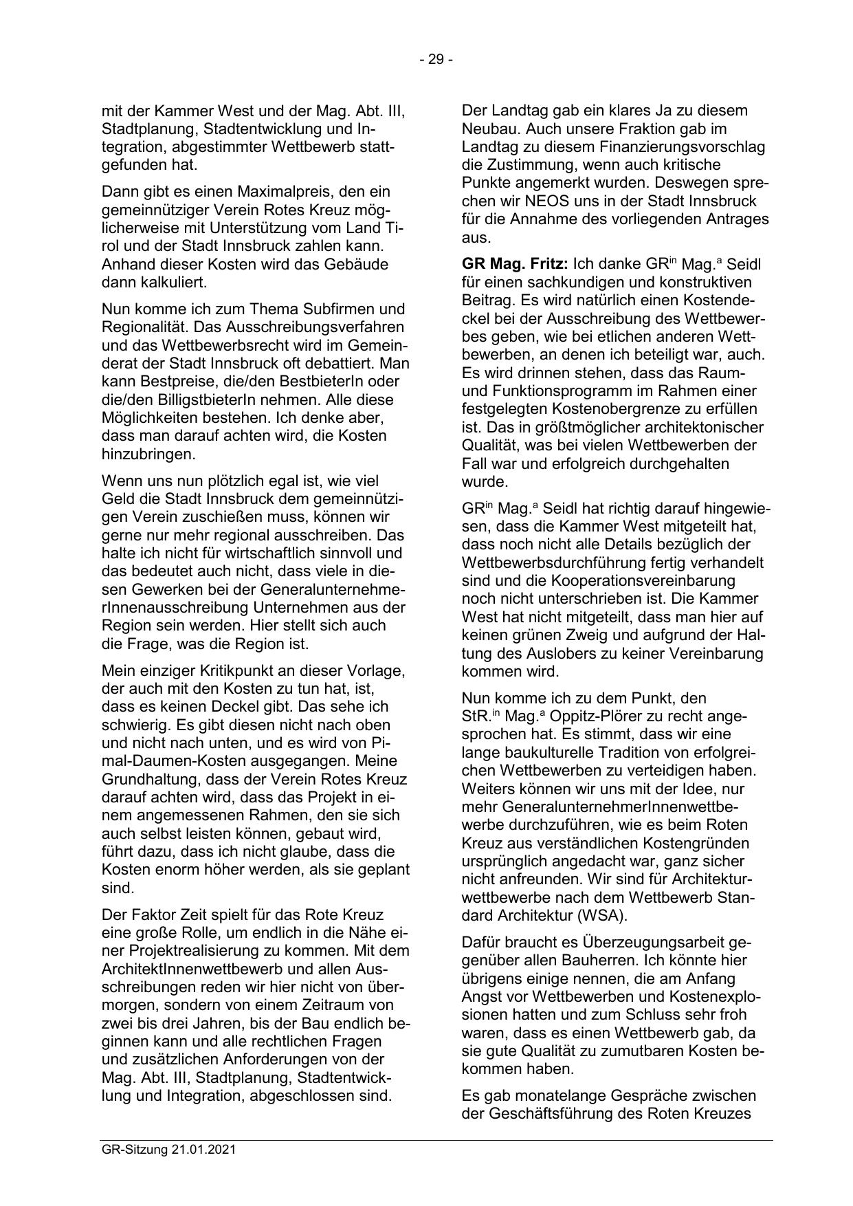 GR Mag. Fritz: Ich danke GRin Mag.a Seidl