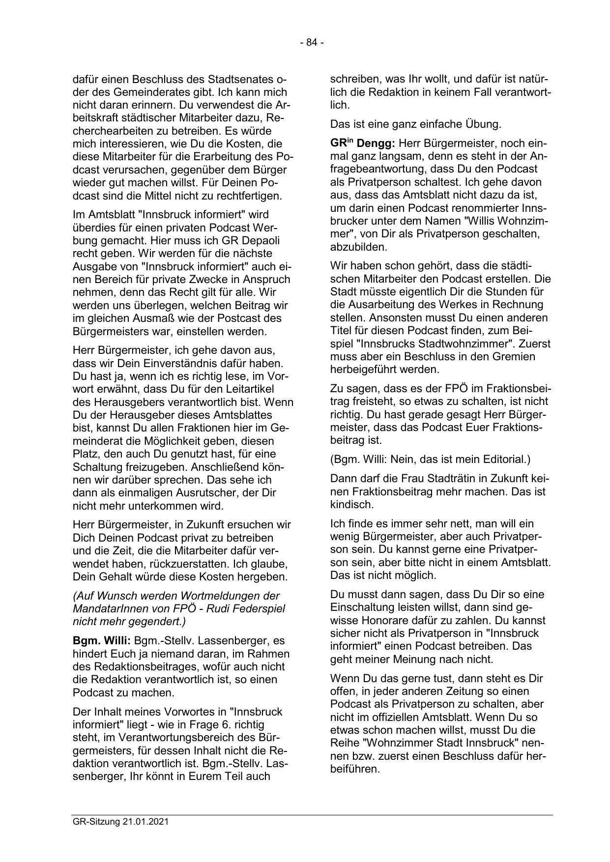 GRin Dengg: Herr Bürgermeister, noch einmal ganz langsam, denn es steht in der Anfragebeantwortung, dass Du den Podcast