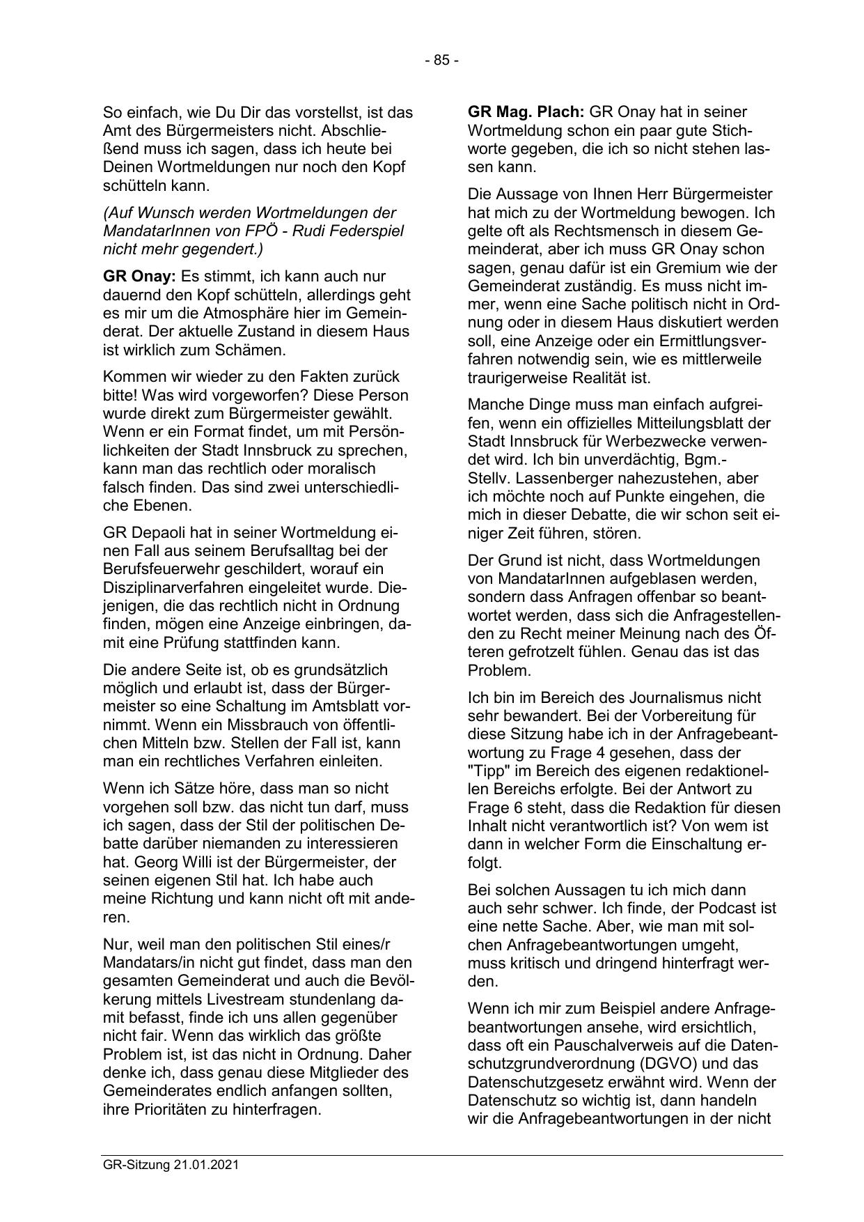 gesamten Gemeinderat und auch die Bevölkerung mittels Livestream stundenlang damit befasst, finde ich uns allen gegenüber
