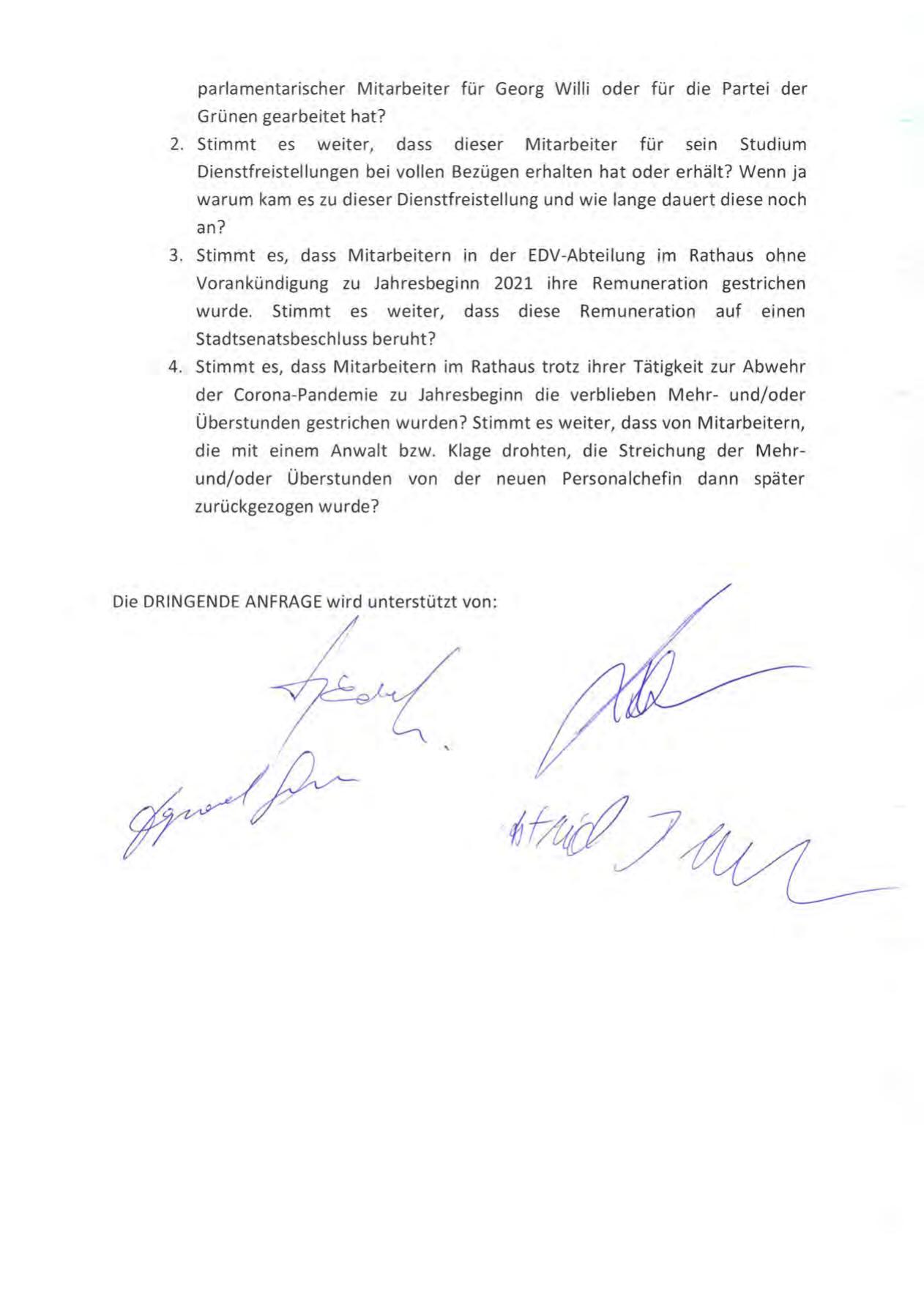 Die DRINGENDE ANFRAGE wird unterstützt von: