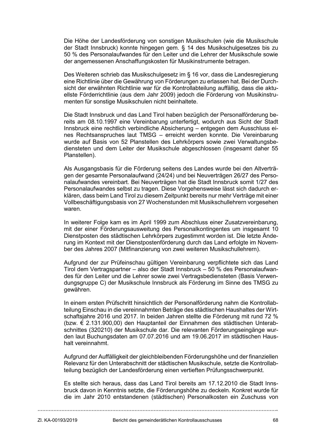 Relevanz für den Unterabschnitt der städtischen Musikschule, setzte die Kontrollabteilung bezüglich der Landesförderung einen vertieften Prüfungsschwerpunkt.