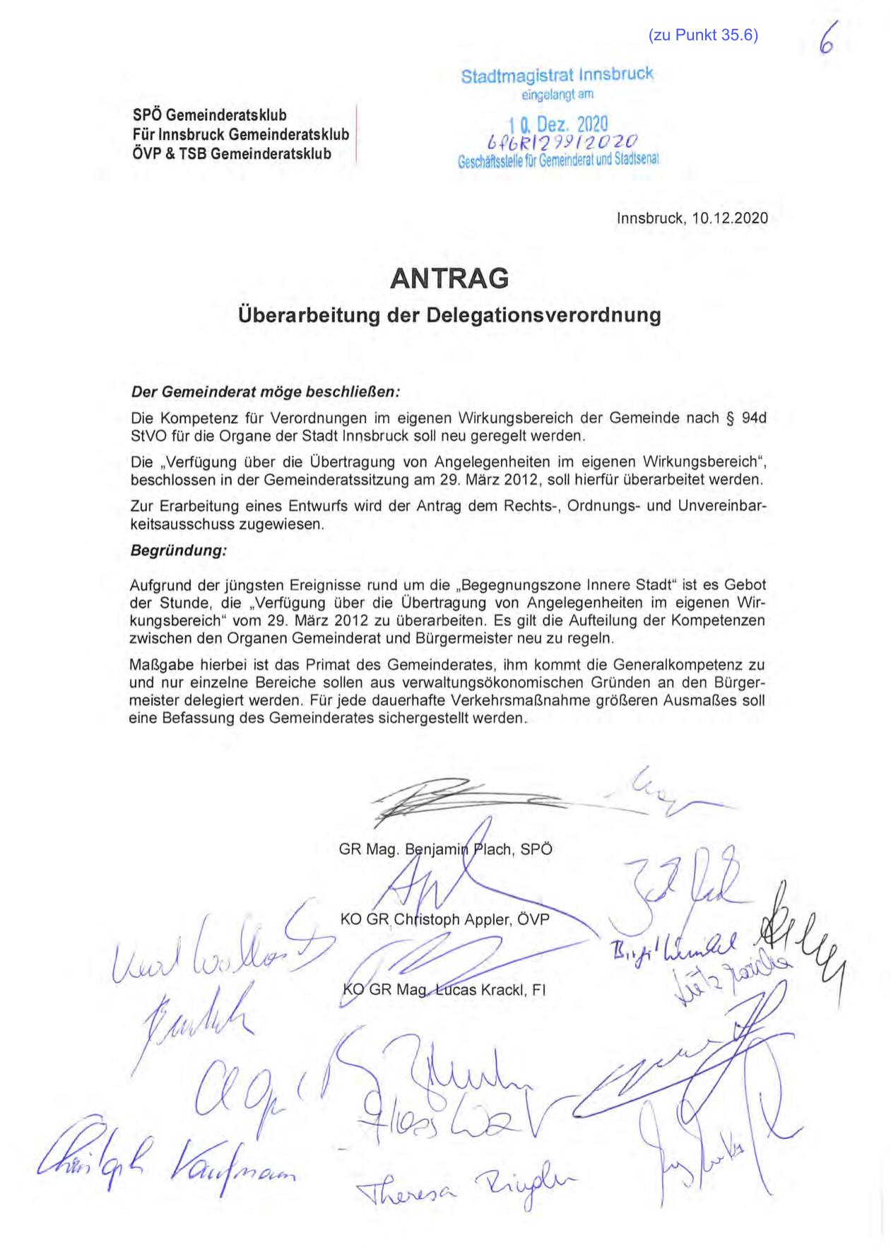 StVO für die Organe der Stadt Innsbruck soll neu geregelt werden .