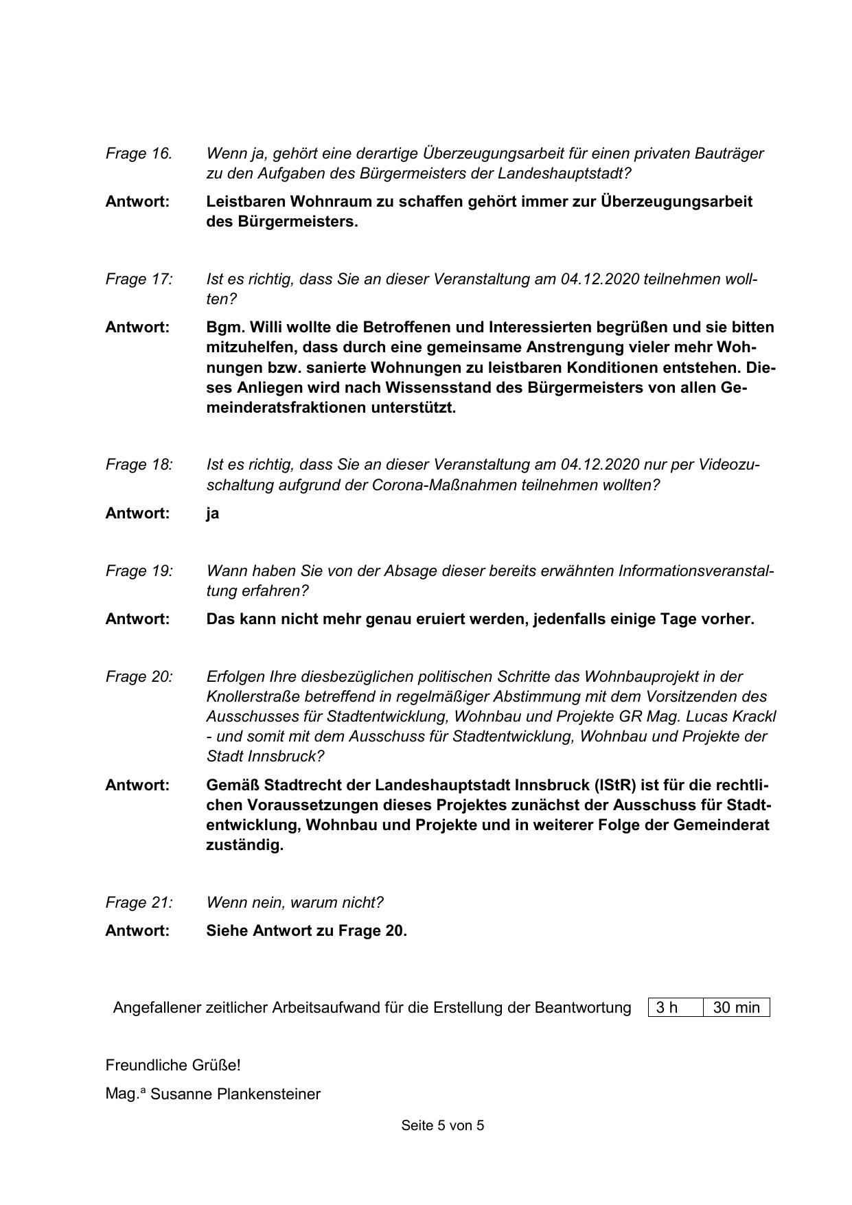 Erfolgen Ihre diesbezüglichen politischen Schritte das Wohnbauprojekt in der